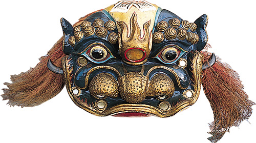In addition to regional differences, Taiwanese lions also differ from one school to the next. Besides the closed-mouth and open-mouth distinction, there is also the matter of which agricultural implement is used in framing the head, thus the existence of fruit-basket lions, chicken-cage lions, wicker-scoop lions, box lions, etc. Some lions have a five-color face (red, black, white, indigo blue, and yellow), and are called "five-element" lions, while "golden-face" lions have a face painted primarily in gold. Golden-face lions are the most common type today, partly because they are used by many different schools, and also because gold is a symbol of wealth, status, and good fortune.