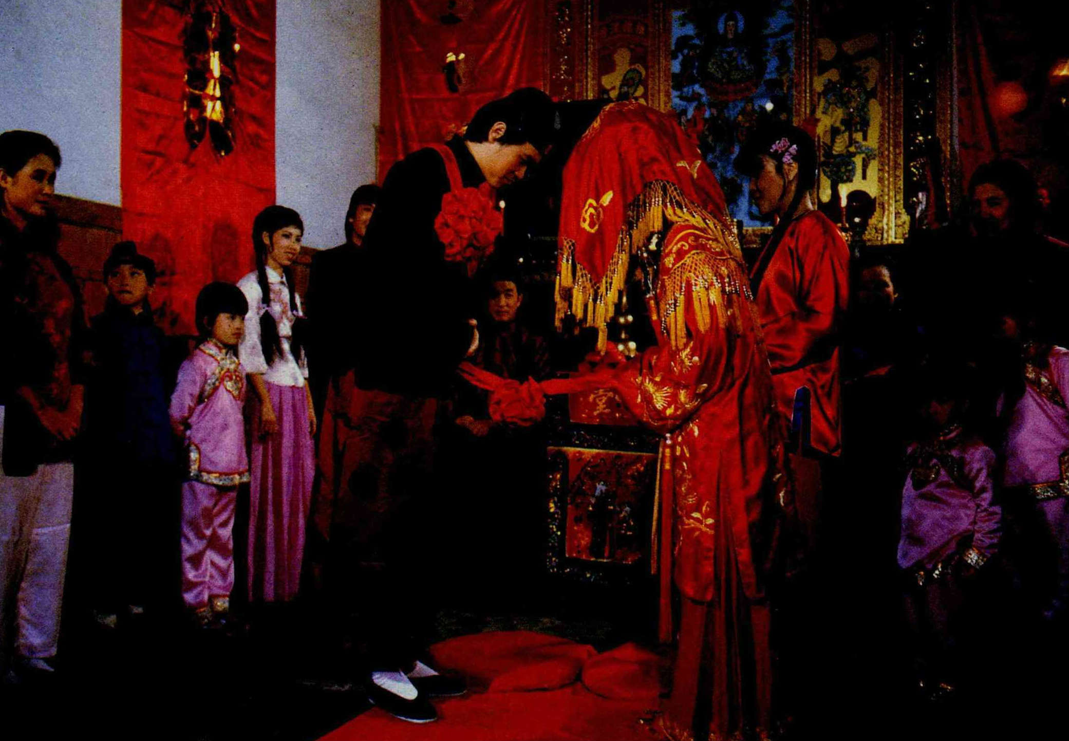 Traditionally, the Chinese wife married into the family of her husband. The original purpose of the marriage ceremony was to aid the wife in this transition, and help her gain approval in her new environment. The complex wedding process gave her a gradual feeling of belonging, and helped all to adjust to the new arrangement. It also served to emphasize the solemnity of the event.