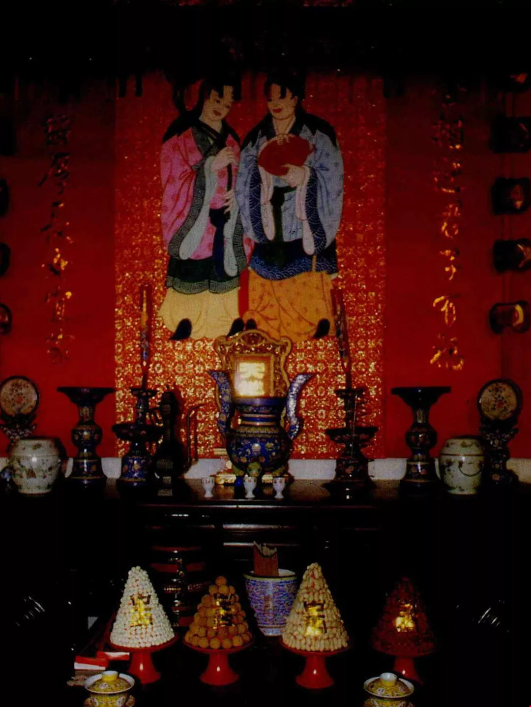 3. Dried longans, peanuts and other offerings are placed on the offering table in an appeal for the birth of a son.