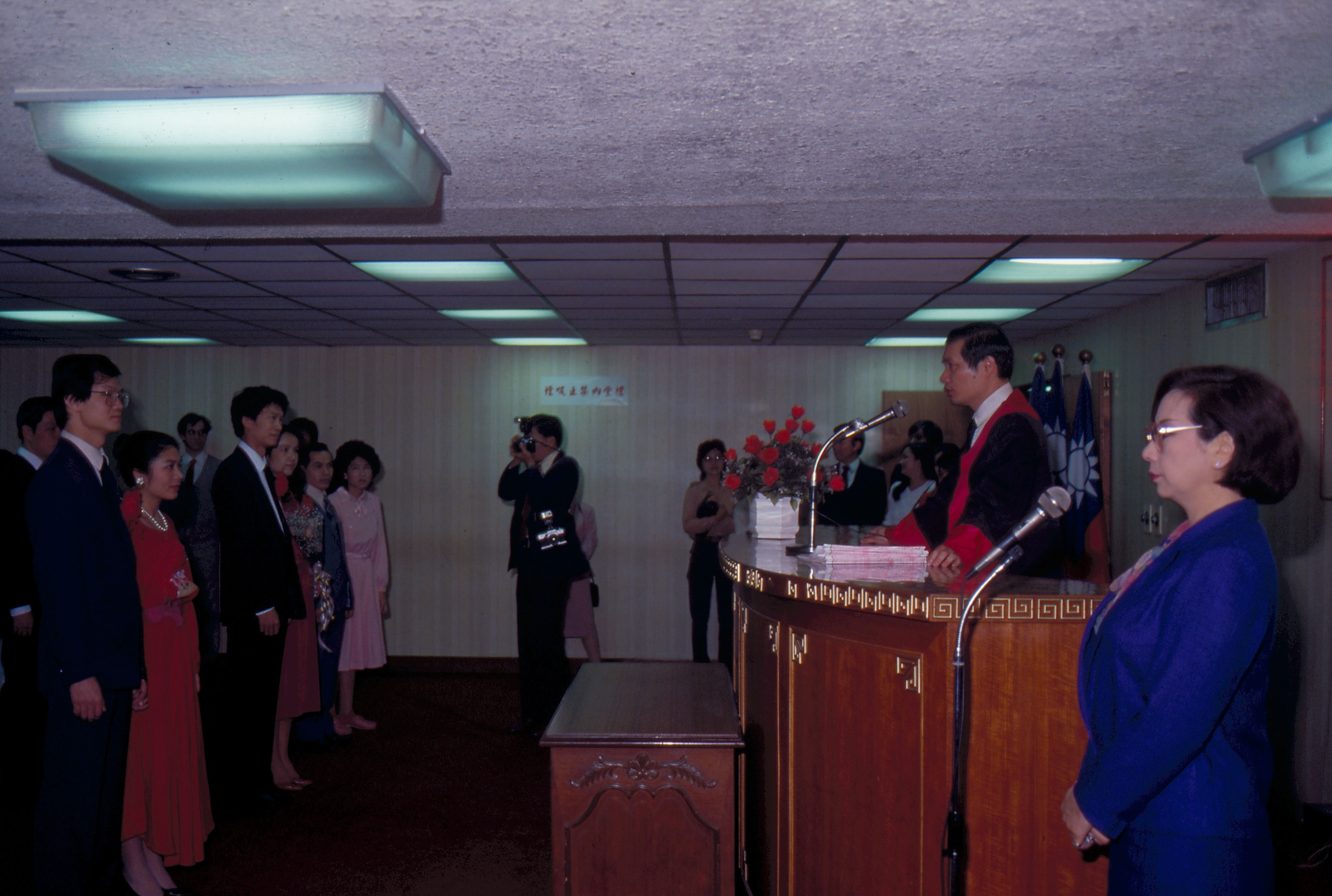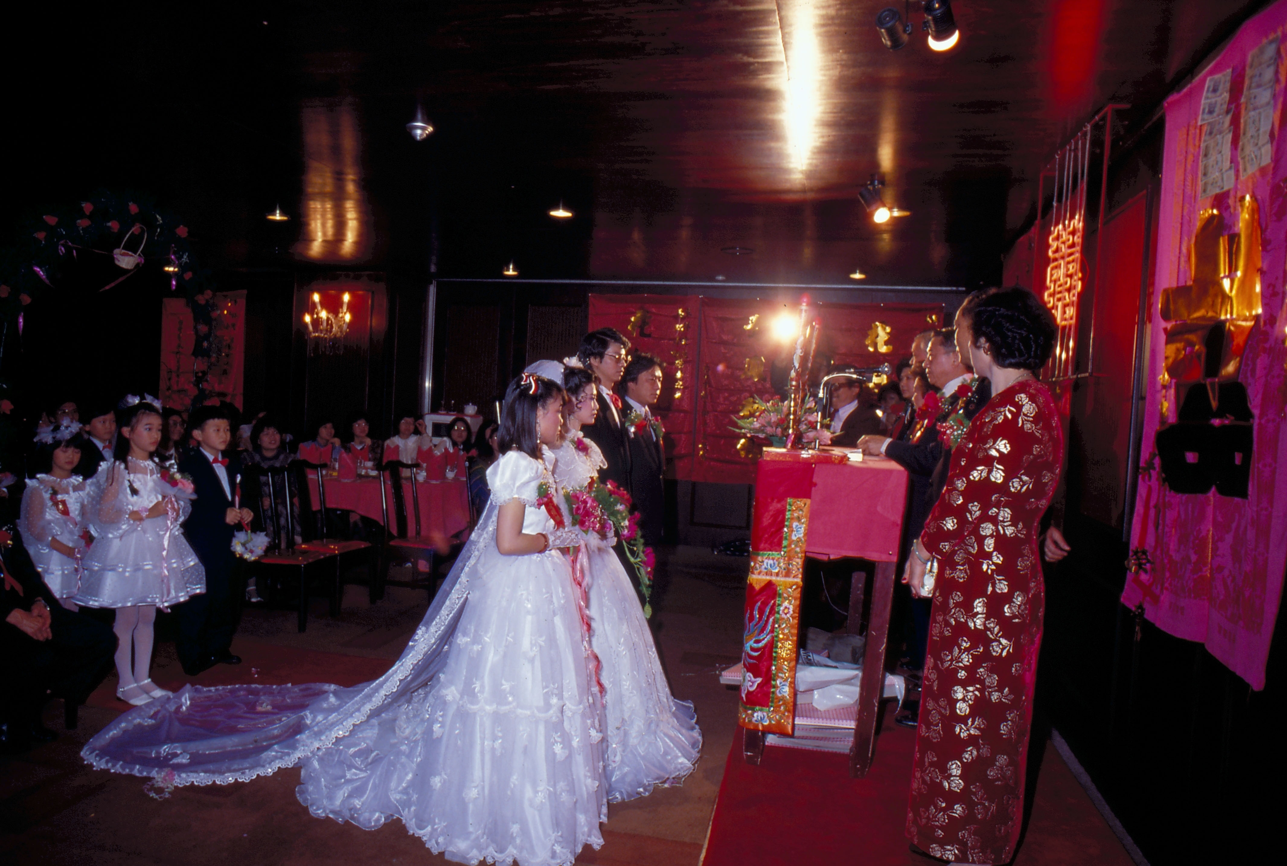The new style wedding has been accompanied by many changes in detail. While white was previously an unpropitious color, it has now replaced the traditional red in the wedding gown. Western suits have replaced long robes and mandarin jackets for the groom. The wedding ceremony is now attended by a legal witness, and a mutual friend replaces the traditional matchmaker. While banquets were previously catered, they are now given in restaurants.