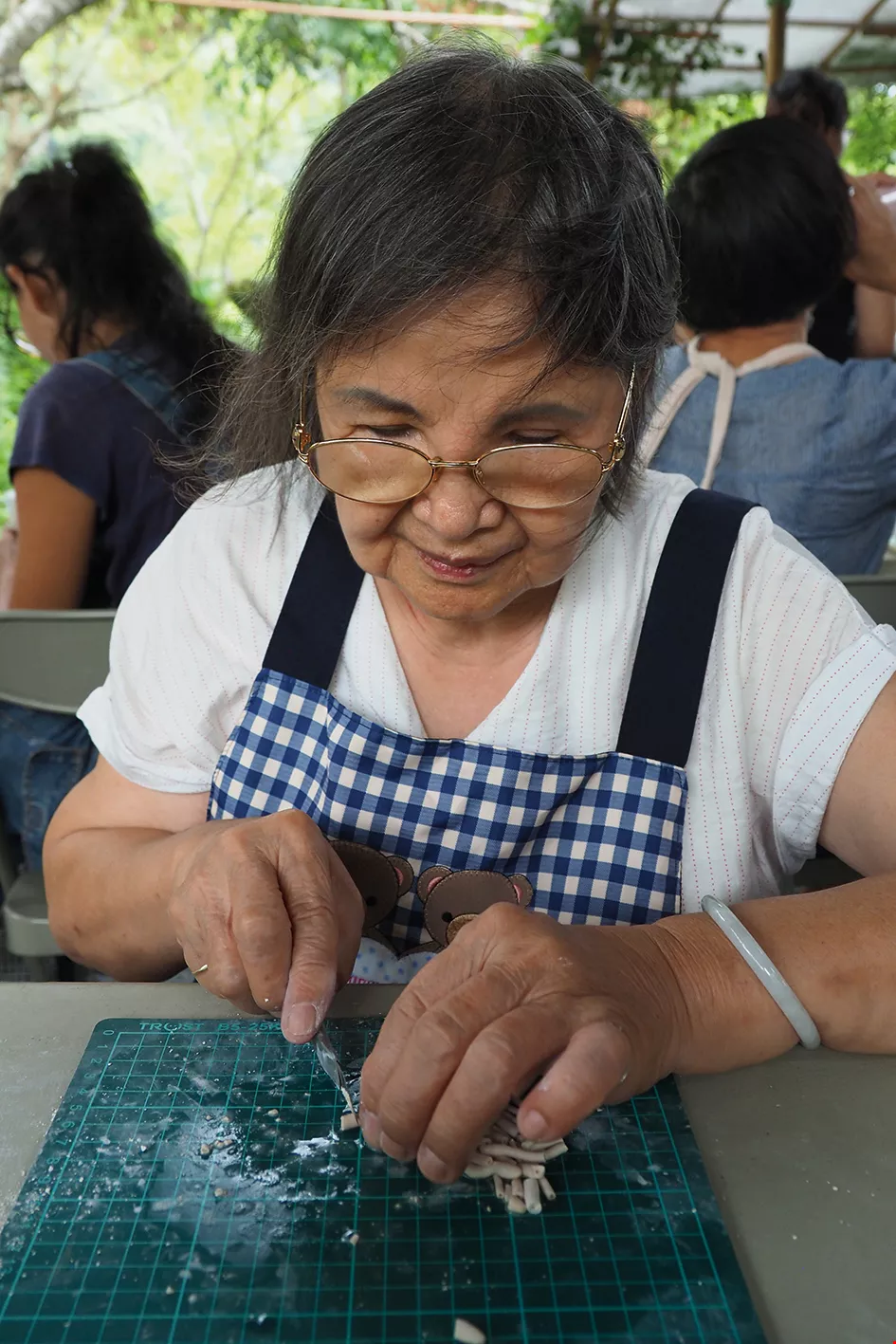 Elug collaborated with National Dong Hwa University’s Professor Wang Yu-hsin on a workshop where students reinterpreted traditional craftsmanship, using china clay (in lieu of Tridacna shells) to make beautiful accessories.