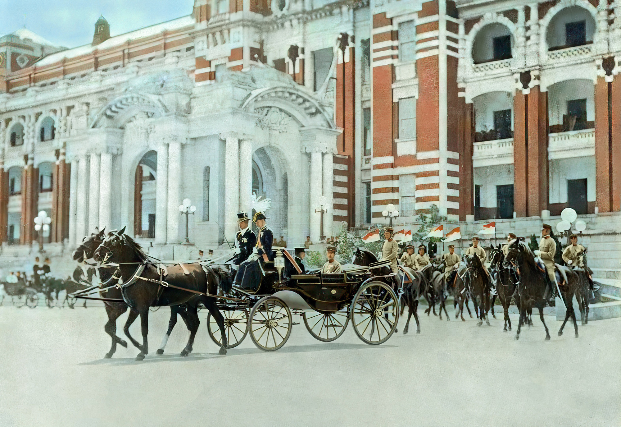 This photograph, taken during the visit to Taiwan of Japan’s Crown Prince Hirohito in 1923, has been colorized to make it more vivid and dynamic, seemingly transcending the limitations of time and space. (courtesy of GJ Taiwan)