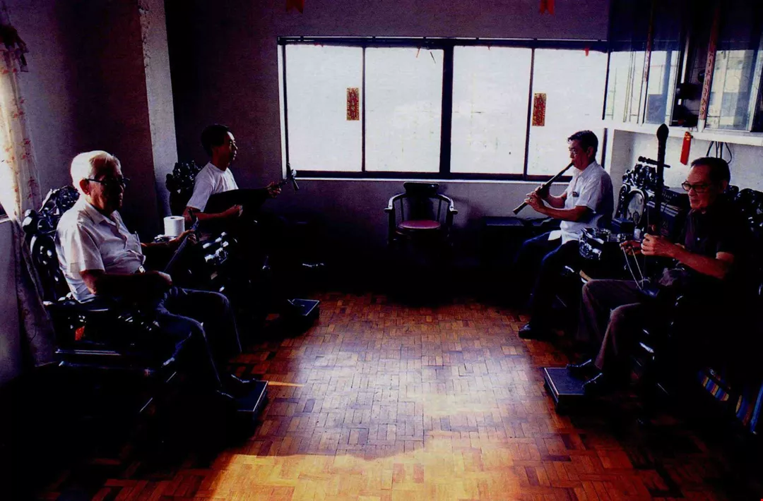 The dearth of musicians means that there is no longer any taboo on the once "treacherous" behavior of being involved with two societies at once, or on receiving instruction from a master at another society. And it's no longer a matter of concern whether one is a nanguan opera actor or a musician, so long as the will to learn is there. The Koc Hong Cultural Association has even launched a scholarship to encourage young people to participate. After seven years without any pupils, Su Shiyong this year finally found herself with three secondary-school girls to teach, all three being recent immigrants from the mainland.