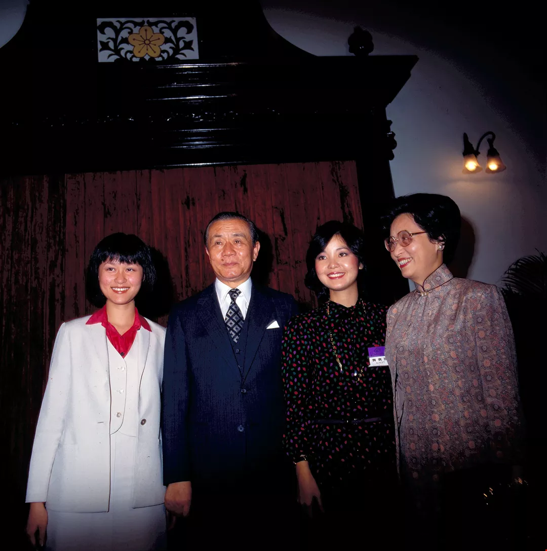 1. Master of ceremonies Tien Wen-chung interviews Teresa Teng. 2. Teresa's eyes brimming with tears as she sings "Plum Blossom," portraying the national flower of the Republic of China. 3. Fans present flowers to Teresa to show their appreciation. 4. Teresa Teng presents her hits at the Golden Horse Award presentation ceremony. 5. Teresa poses for a picture with Premier Sun Yun-suan, his wife and daughter. 6. Teresa announces the winner of the best feature film song at the Golden Horse Award presentation ceremony. Standing beside her is Chiang Kwung-chao.