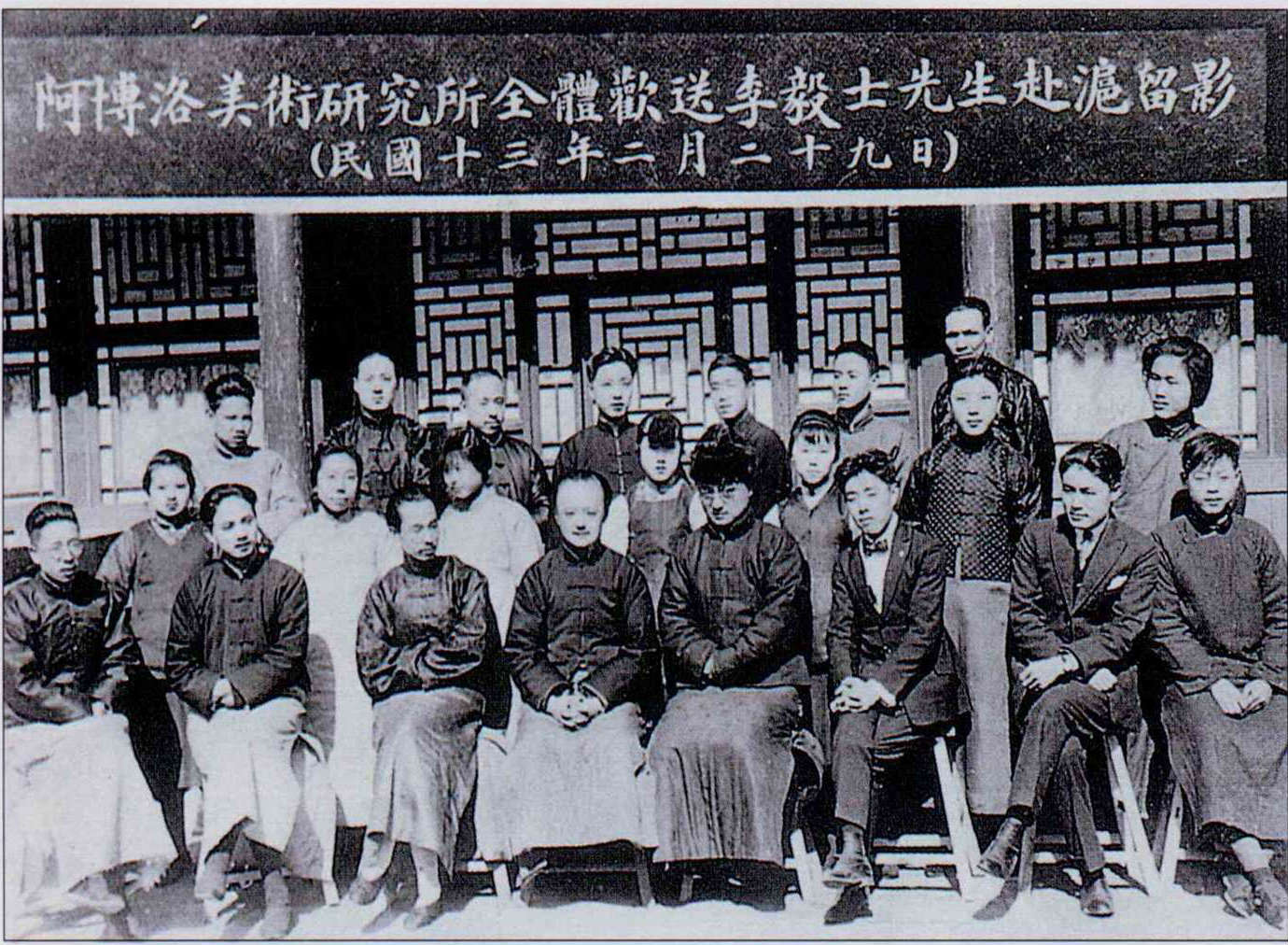 In his long smock and short jacket, Taiwanese artist Liu Chin tang (third from left in the front row) had a naive and romantic idea of his mother country, China. (photo courtesy of Taipei Fine Arts Museum)