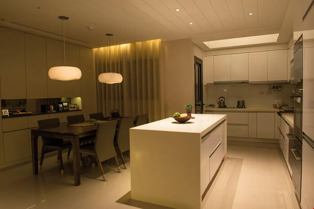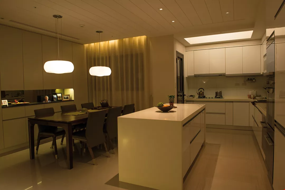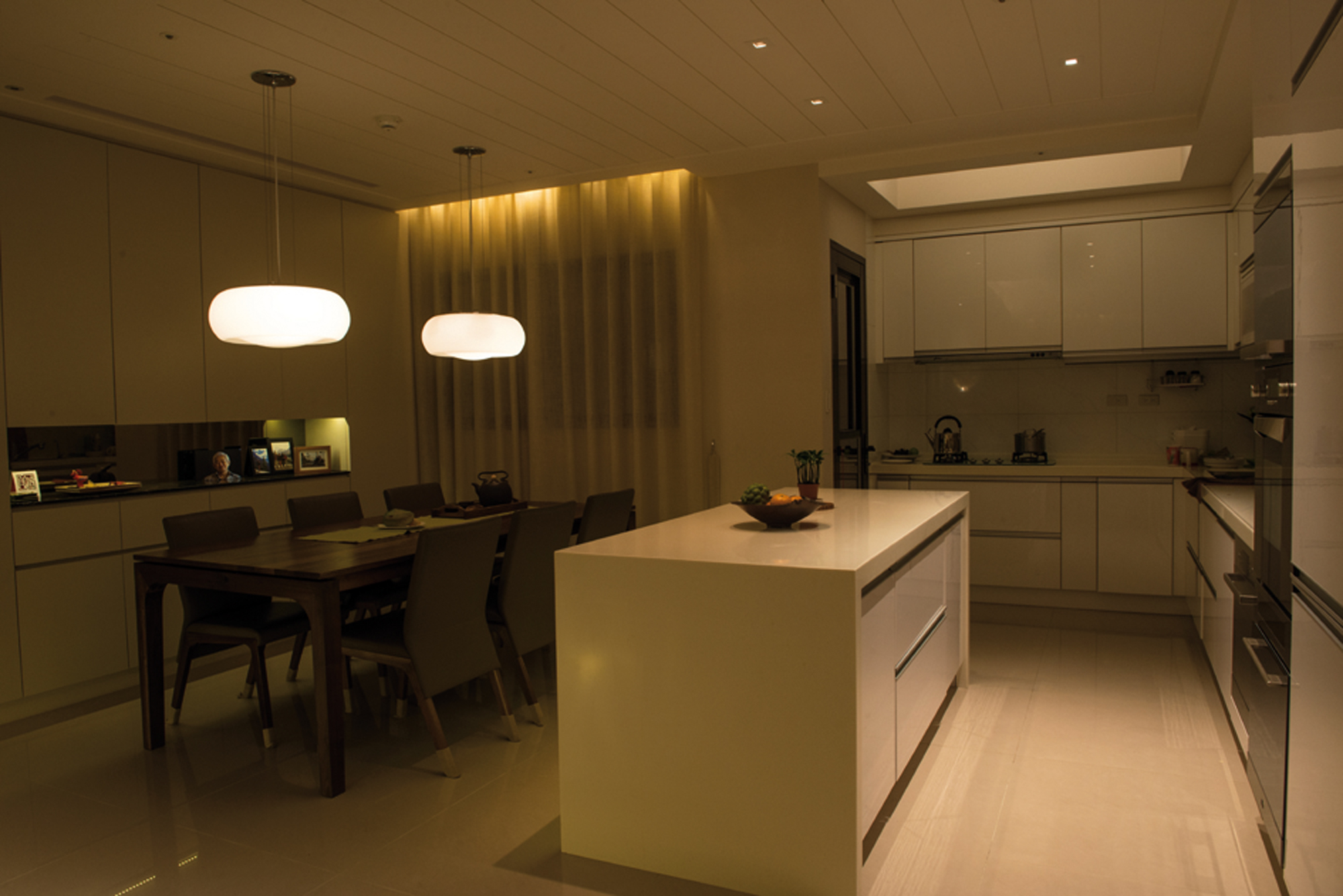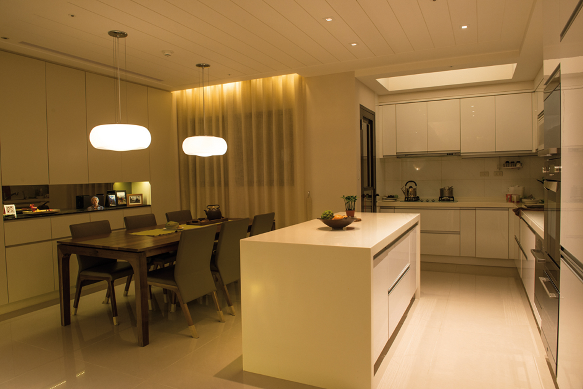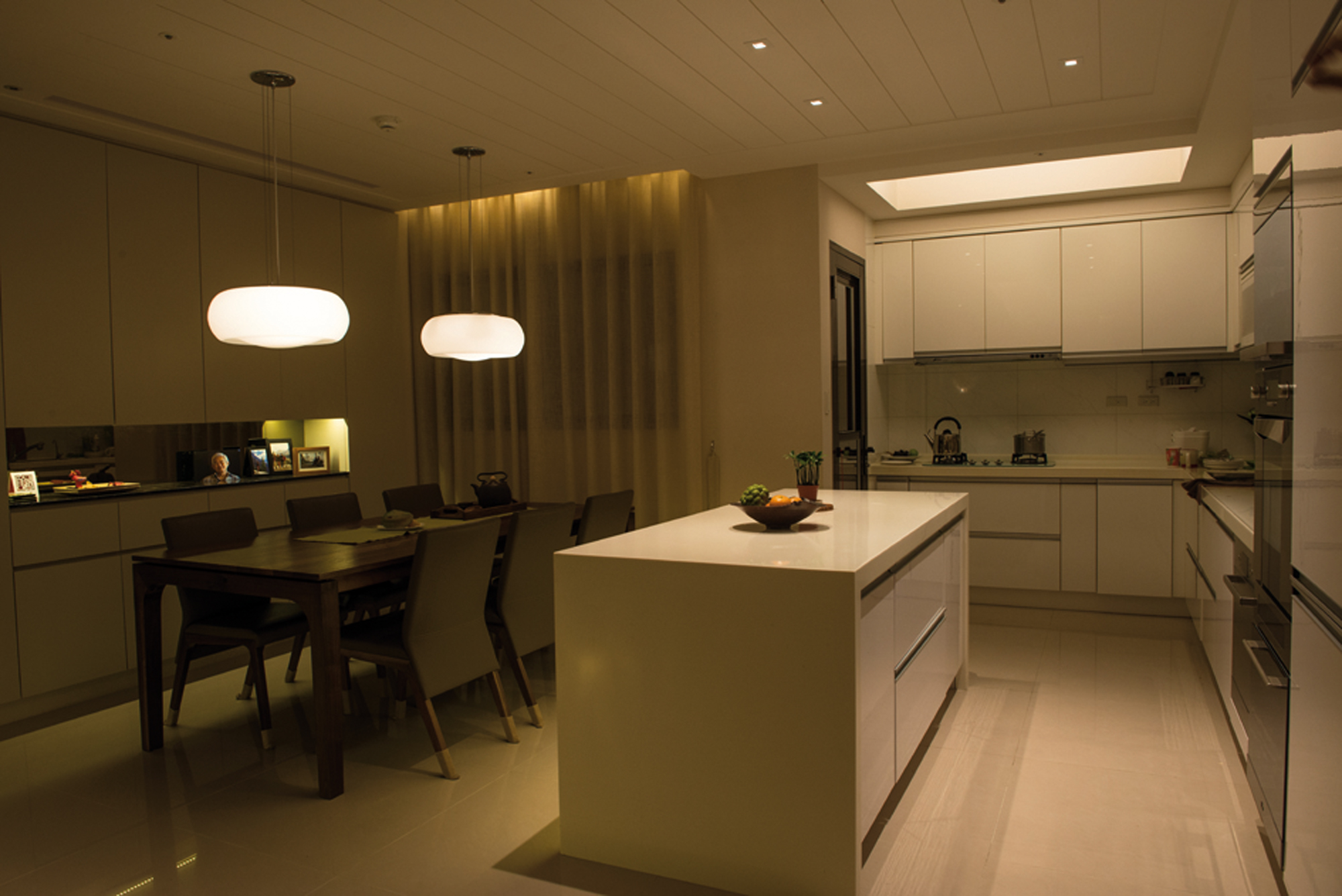 On arriving at Chou Lien’s home, visitors might think it is decorated in a rather ordinary fashion. But within the commonplace lurk the extraordinary principles of his work. When he turns up the lights, small spotlights above the kitchen island begin to shine softly, then circular hanging lamps above the kitchen table start to glow. When the hour is late, Chou dims the lights and savors the night’s solitude enveloped in the gentle glow. When he flicks on the lights beneath the table, the interplay of light and dark lends the surface an even more three-dimensional appearance.