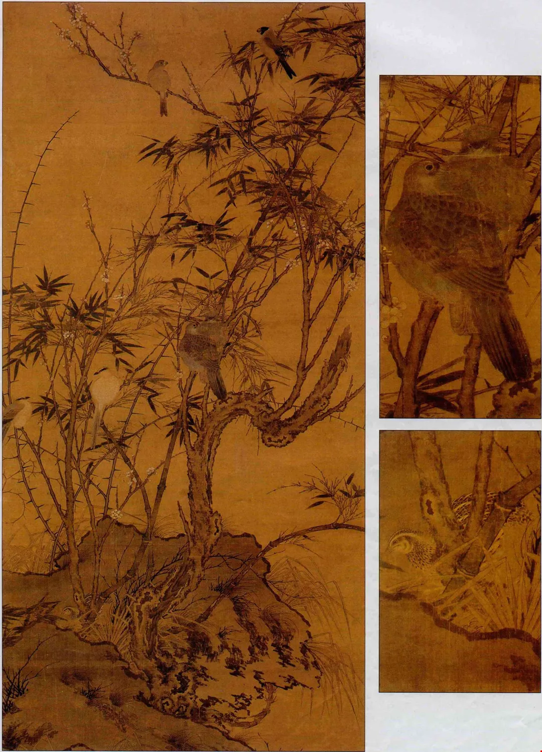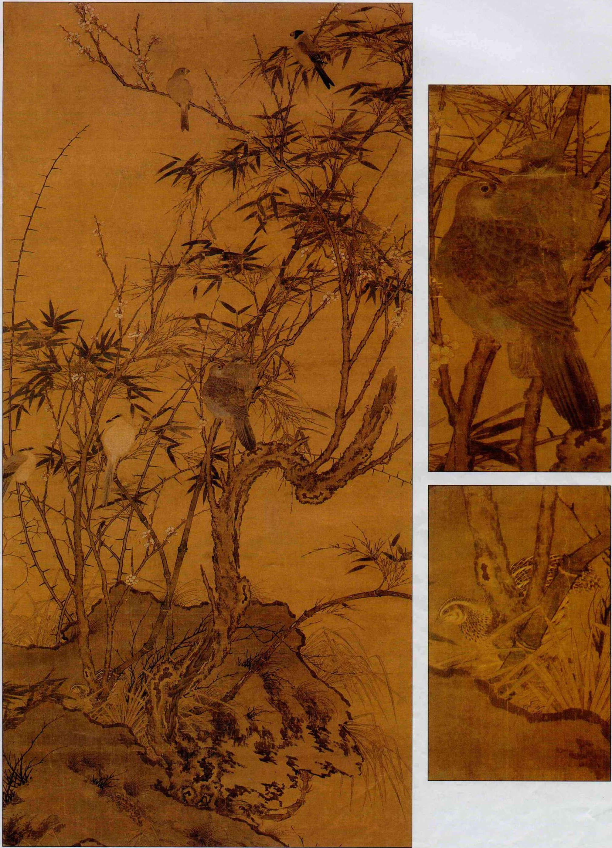Art historians say that Plum, Bamboo and Animals from the painting academy of the Sung emperor Hui Tsung reveals that the artist not only knew how bamboo grows and sprouts leaves, but also that he understood the difference between the long fine feathers of the pigeon and the pointed plumage of the quail.