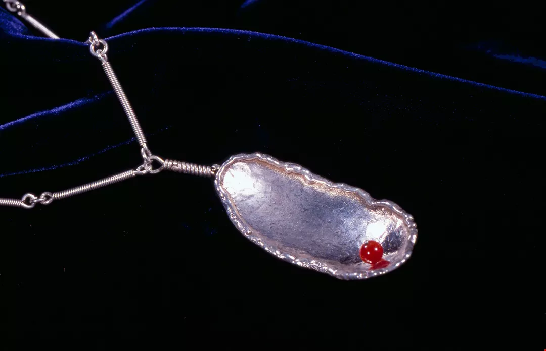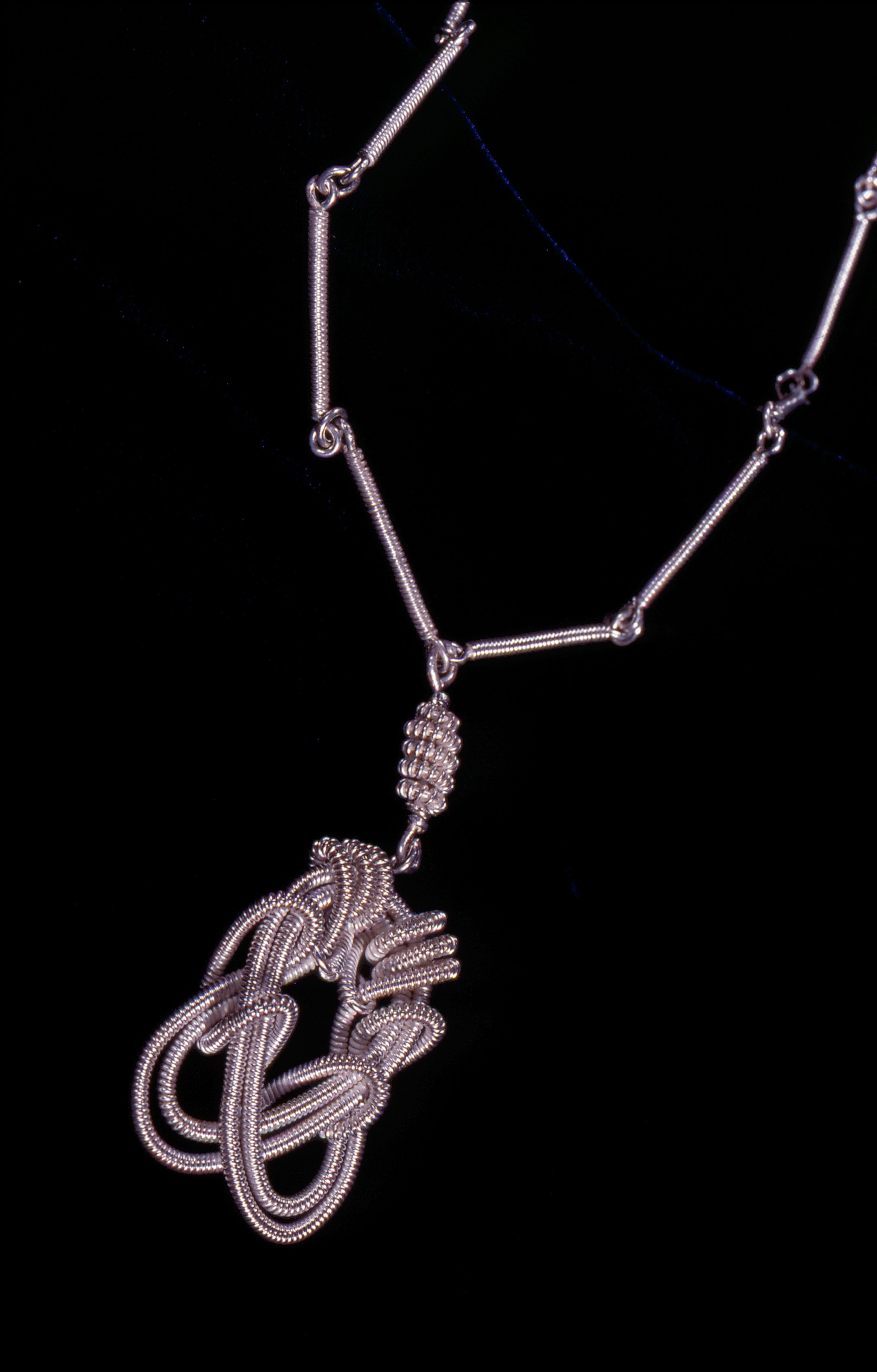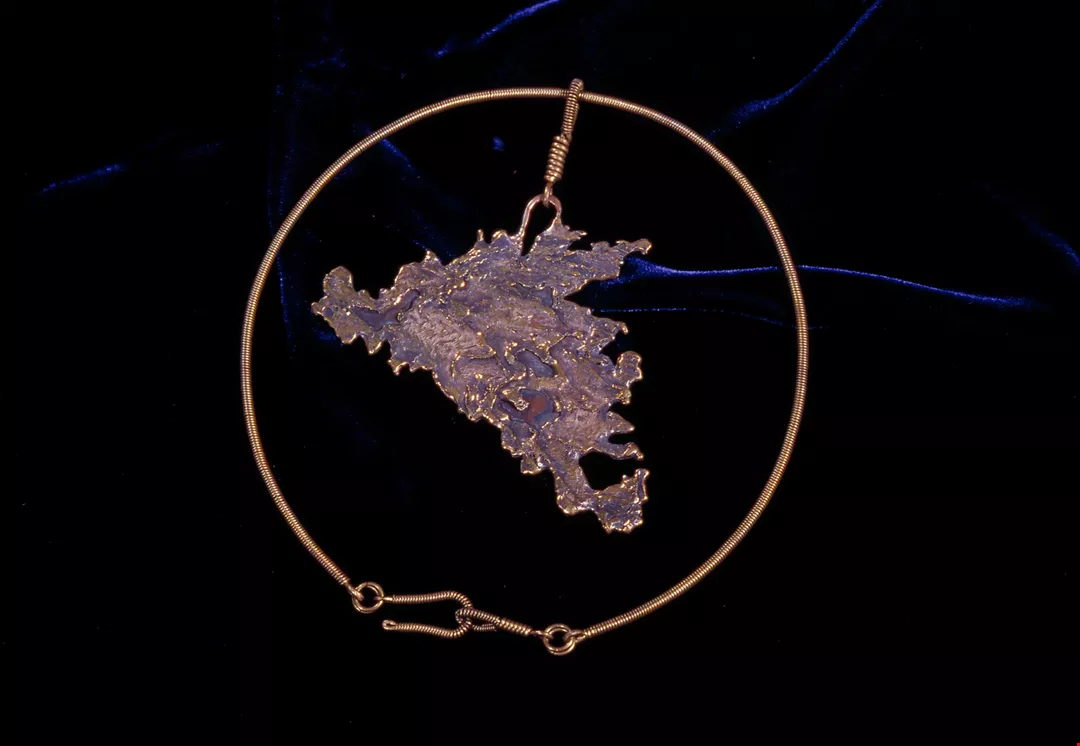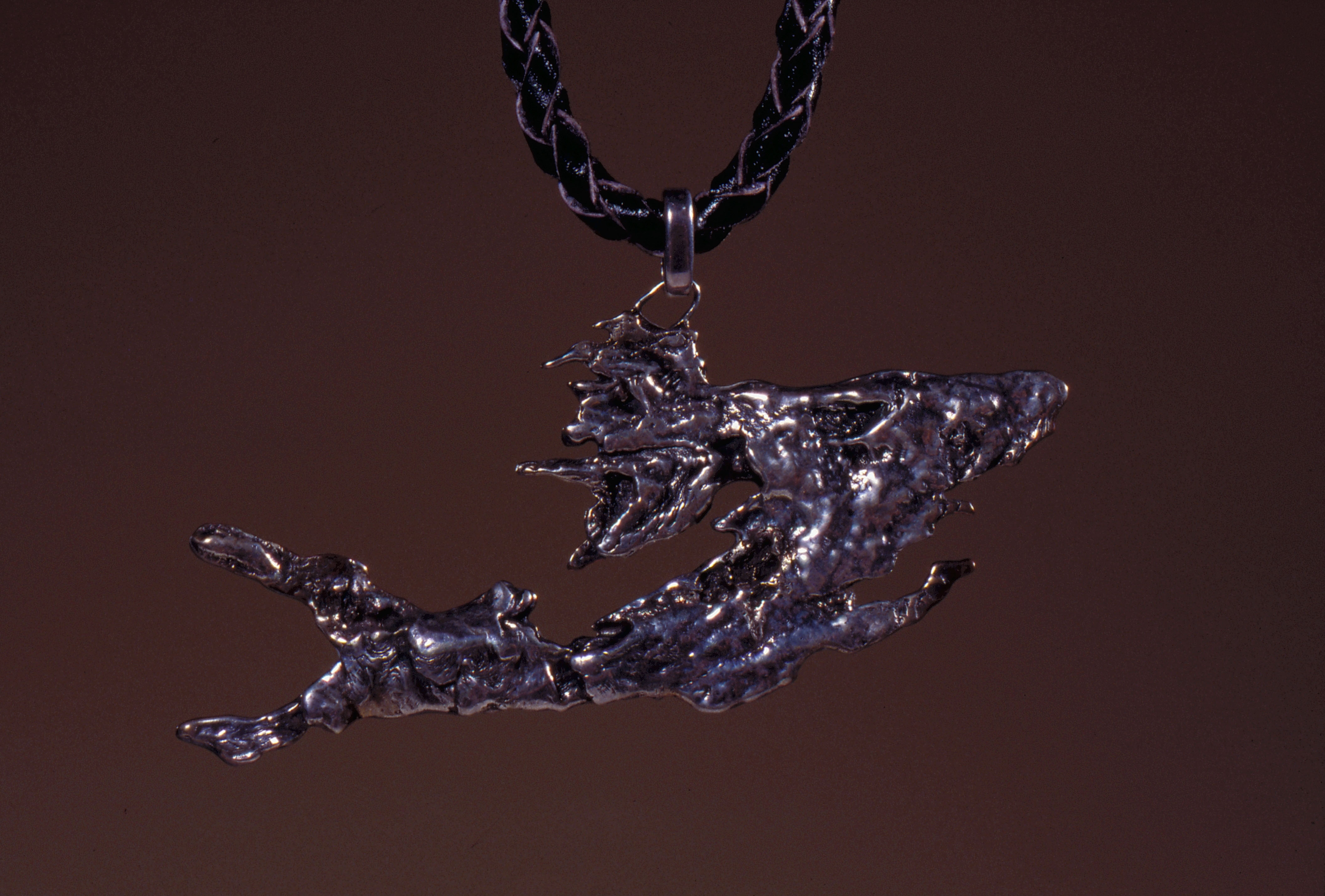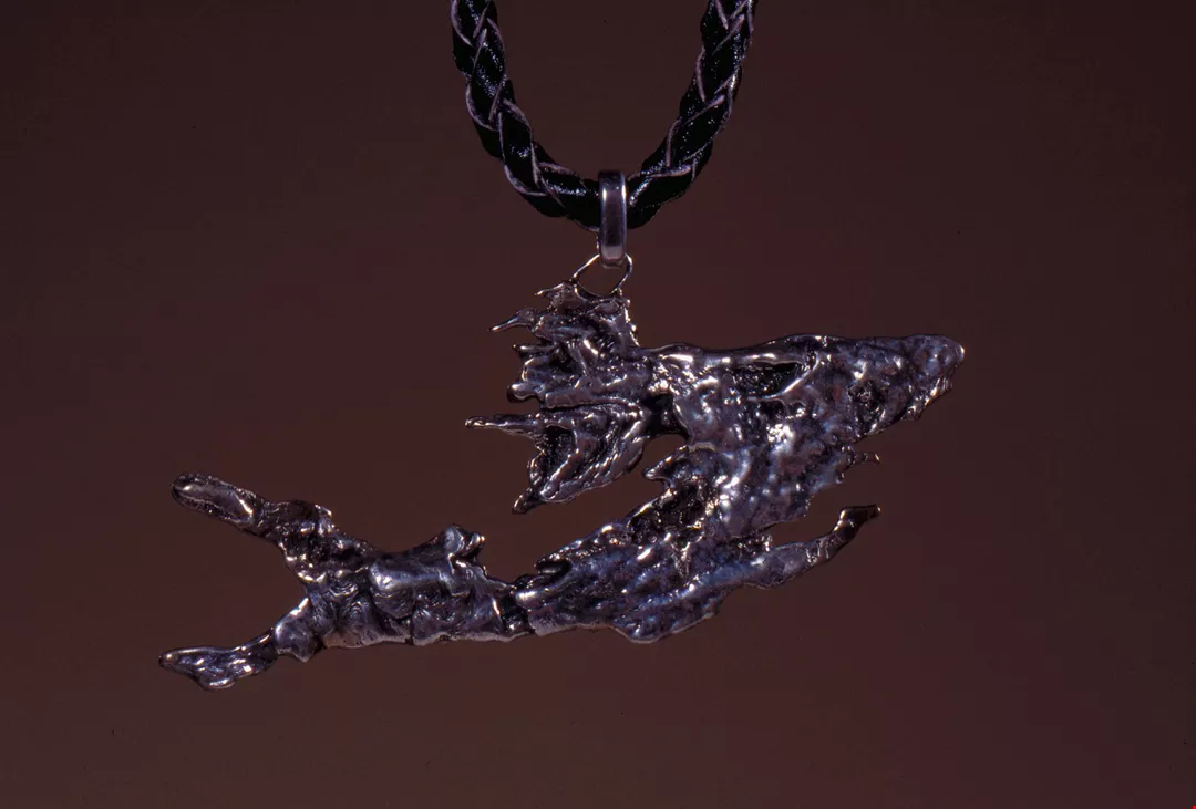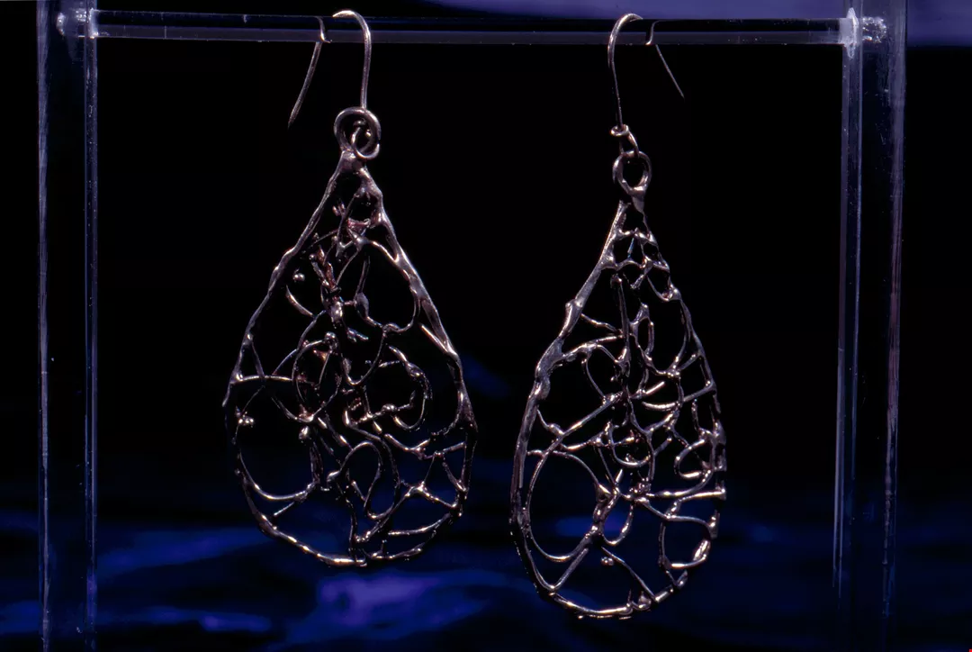 6. A web-like pendant created from "spilled" molten metal.