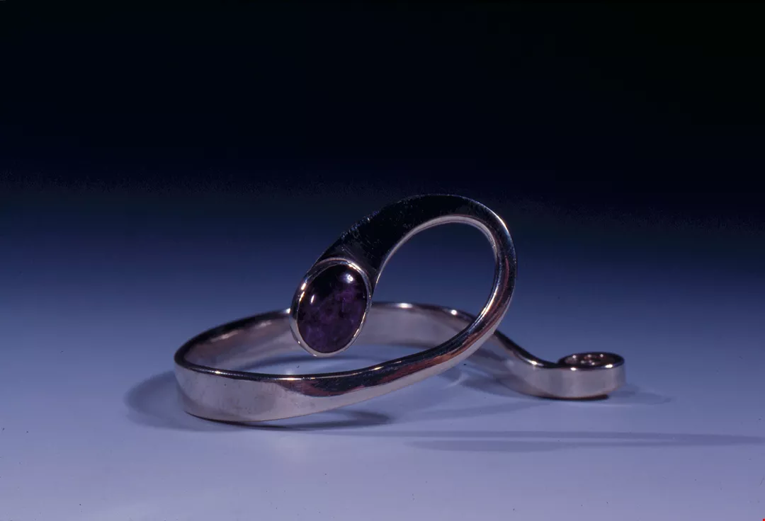 While Liu's early jewelry had recognizable shapes, his work has gradually become abstract. His specialty is creating oval forms with wire-work.