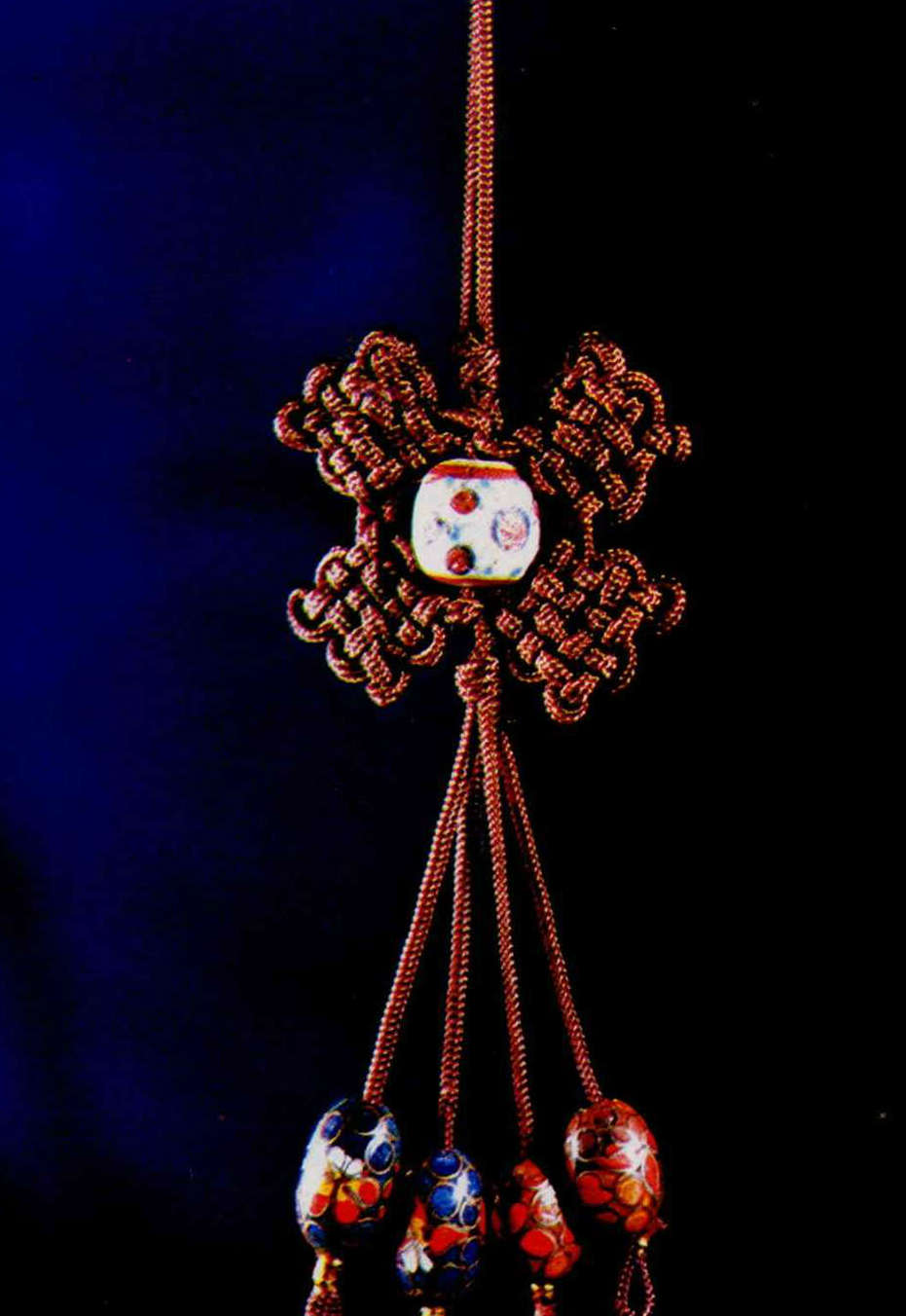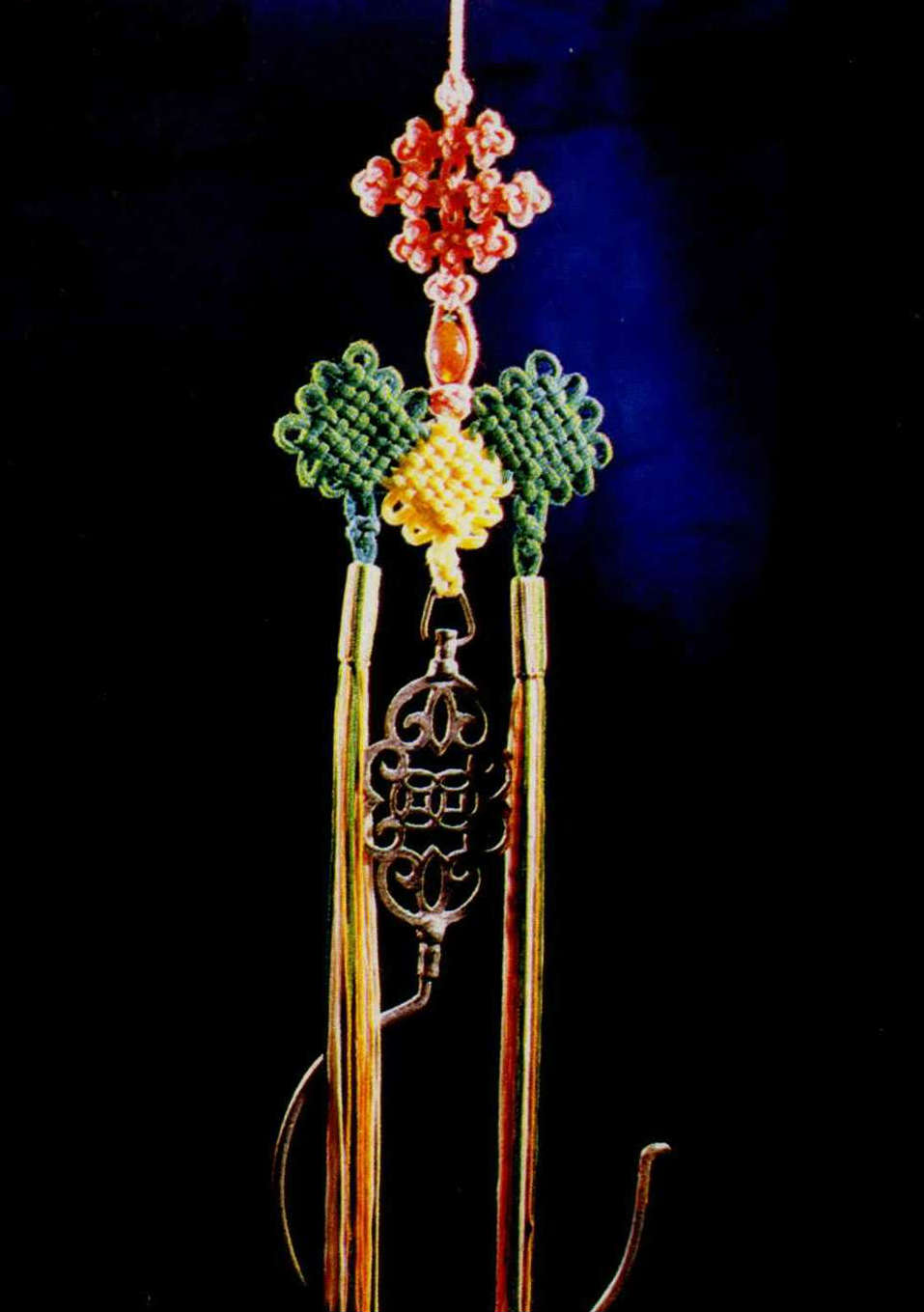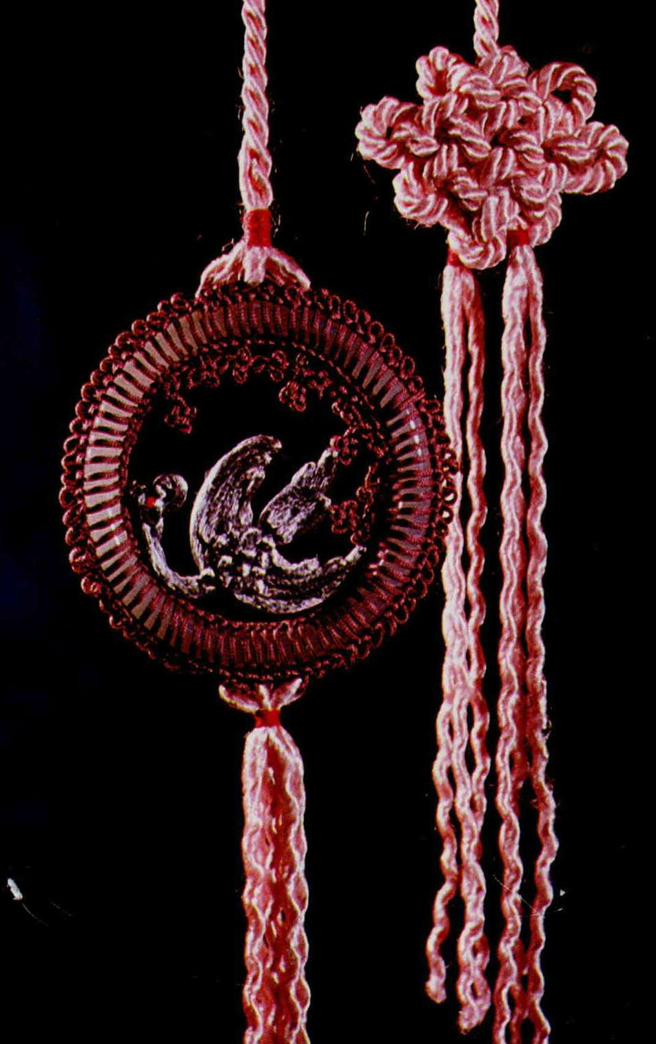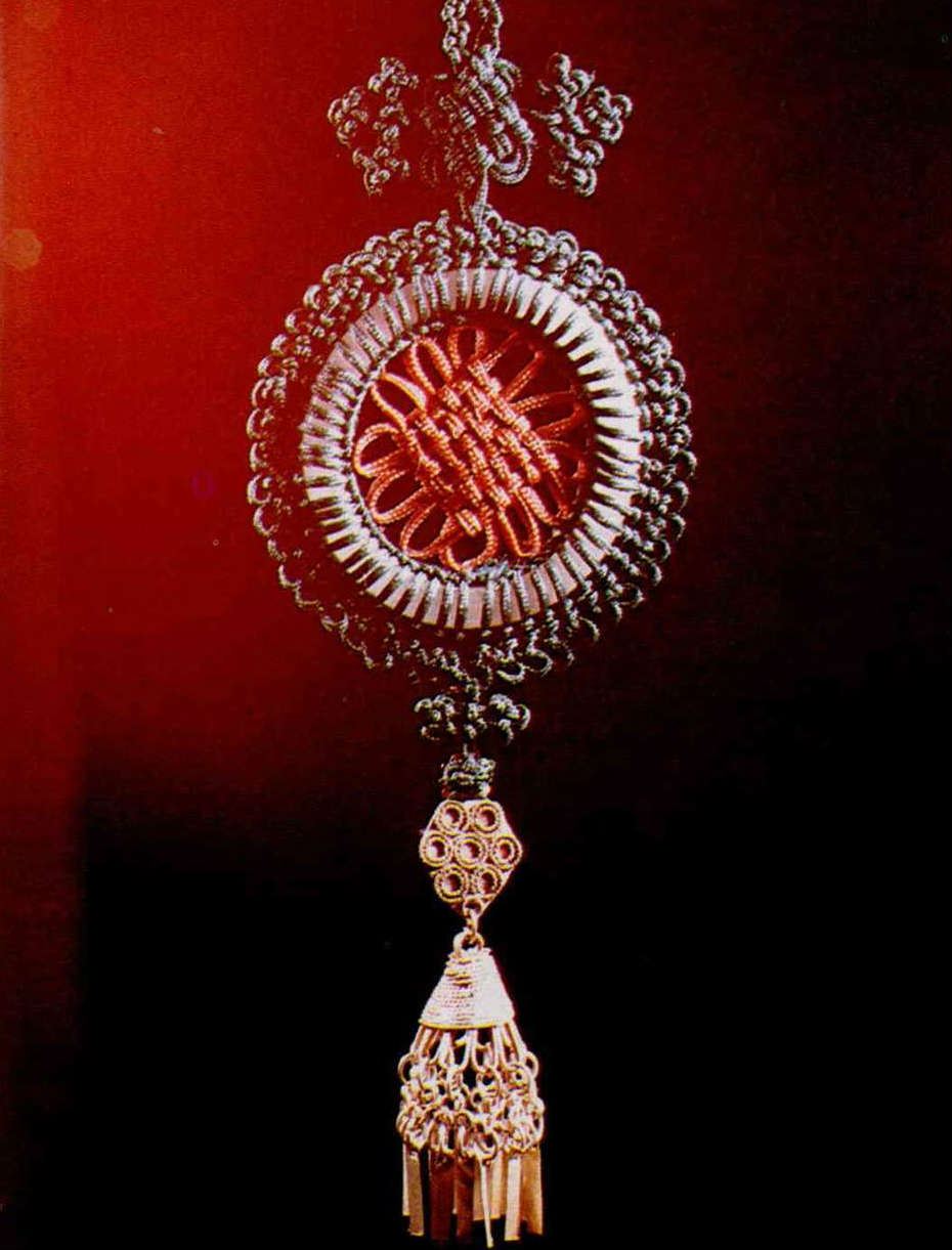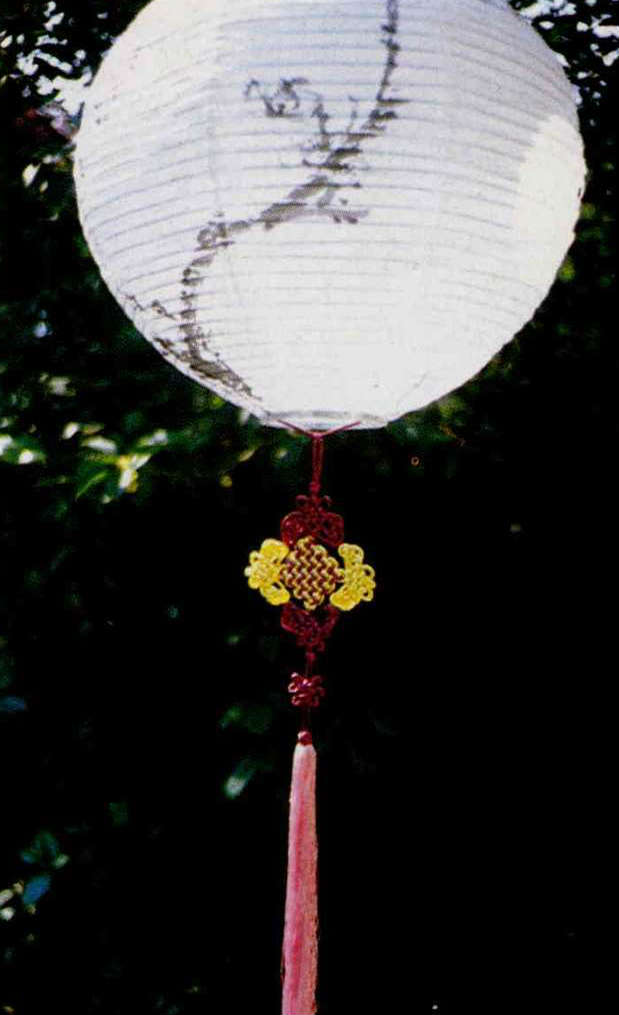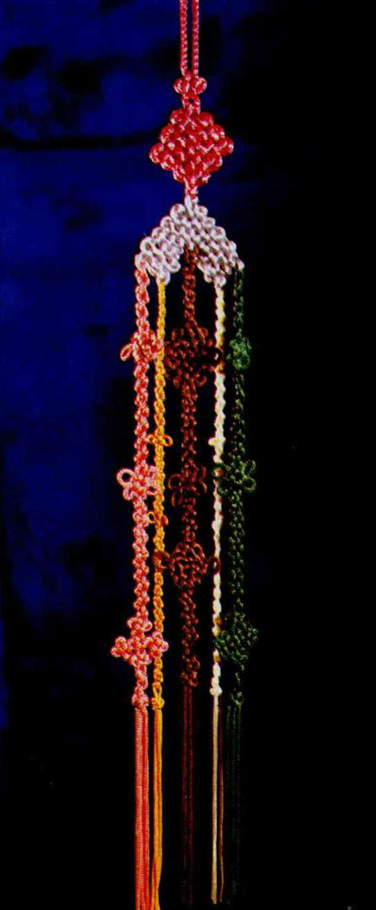 She explained that traditional Chinese macrame is a combination harmonizing colors and knots with the objects to which they are attached. The best knotwork design brings out the beauty and meaning of an ornament.