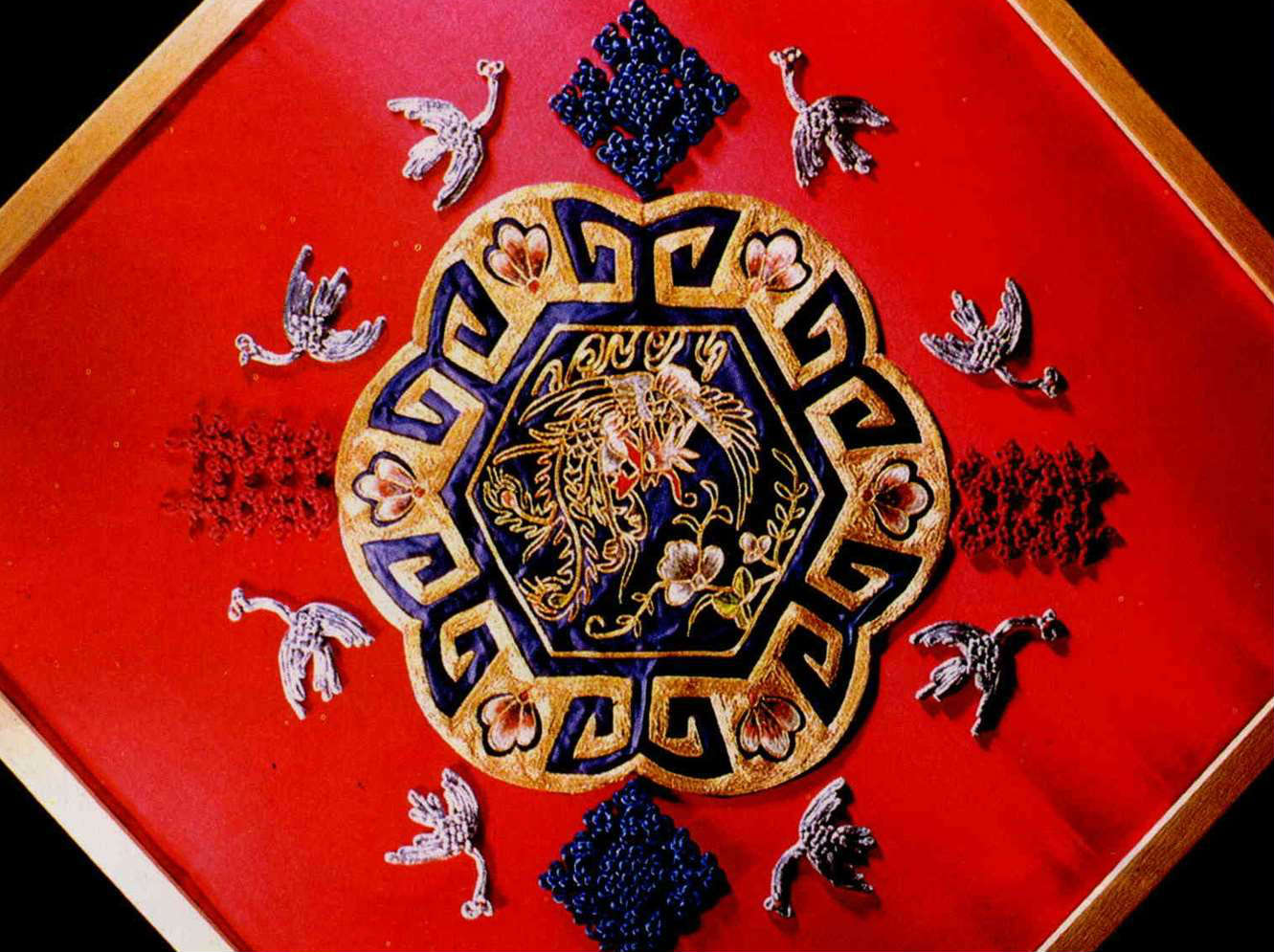 The "Kao Sheng I Pin", insignia of the highest-ranking officials in ancient times, depicts a white crane flying over purple clouds, and is regarded as a good omen.