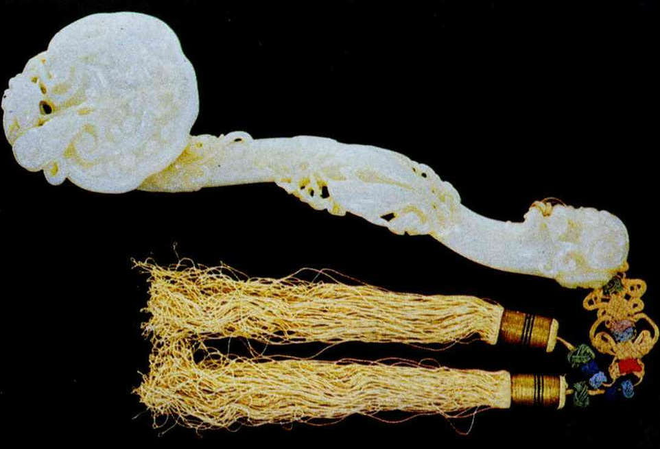 Ladies' vanity bags are beautified by knotted decorations, as are the traditional ju yi scepters.