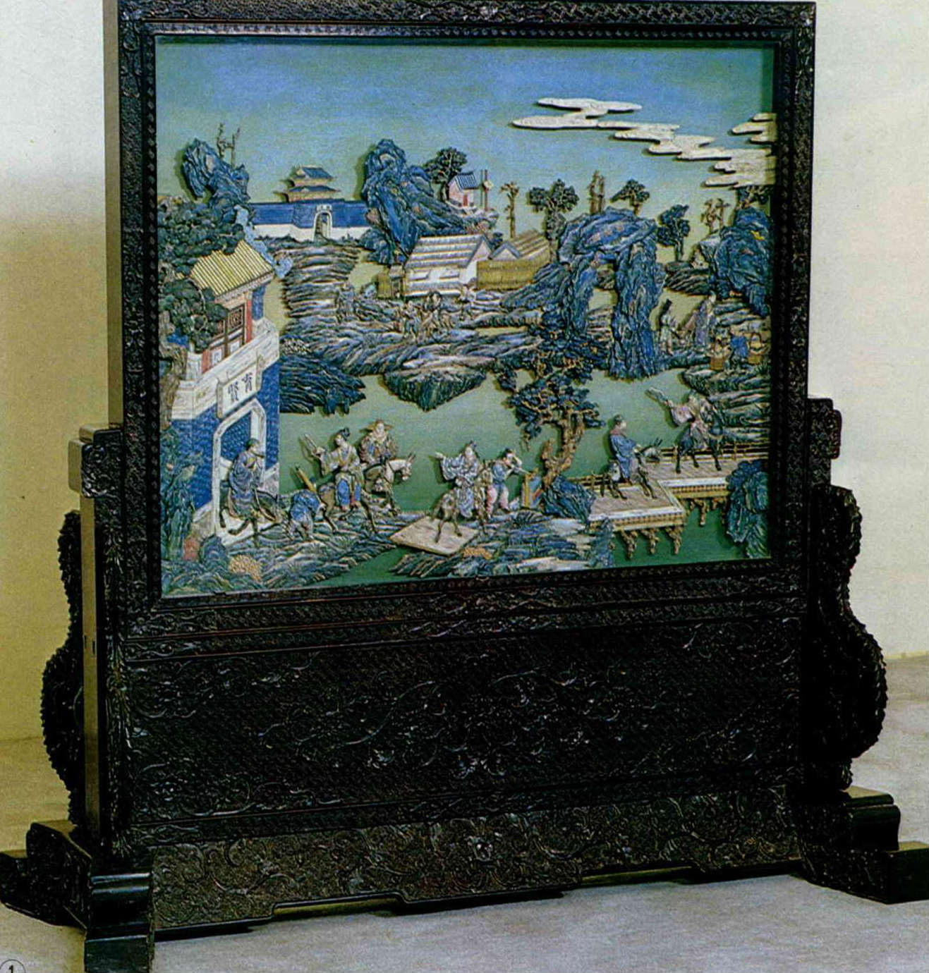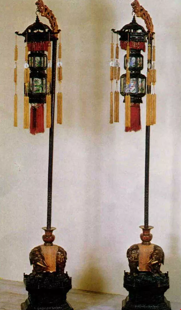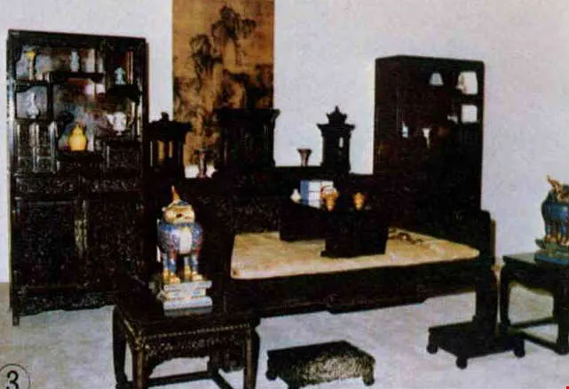 By the time of the Ching dynasty, a set of furniture was arranged symmetrically, and extreme care was taken to achieve uniformity. However, the lively interior decoration--paintings on the walls, pottery in the antique cabinets, enamel curios, decorations on a square chi--are never lacking in radiance or magnificent craftsmanship. With a lustre and stateliness like that of black silk, they complement the elegant furniture. Against a white wall background, they have a fabulous ornamental effect, which brings out their splendor.