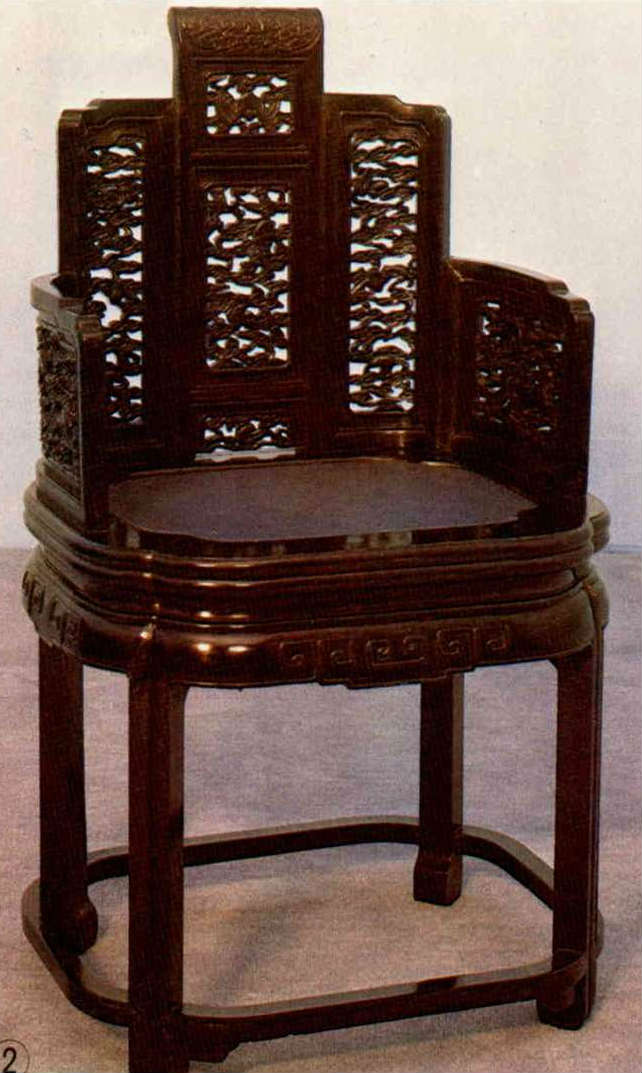 The Tang dynasty saw the advent of stationary four-legged chairs, while the round-backed "louhan" style was developed in the Sung period.