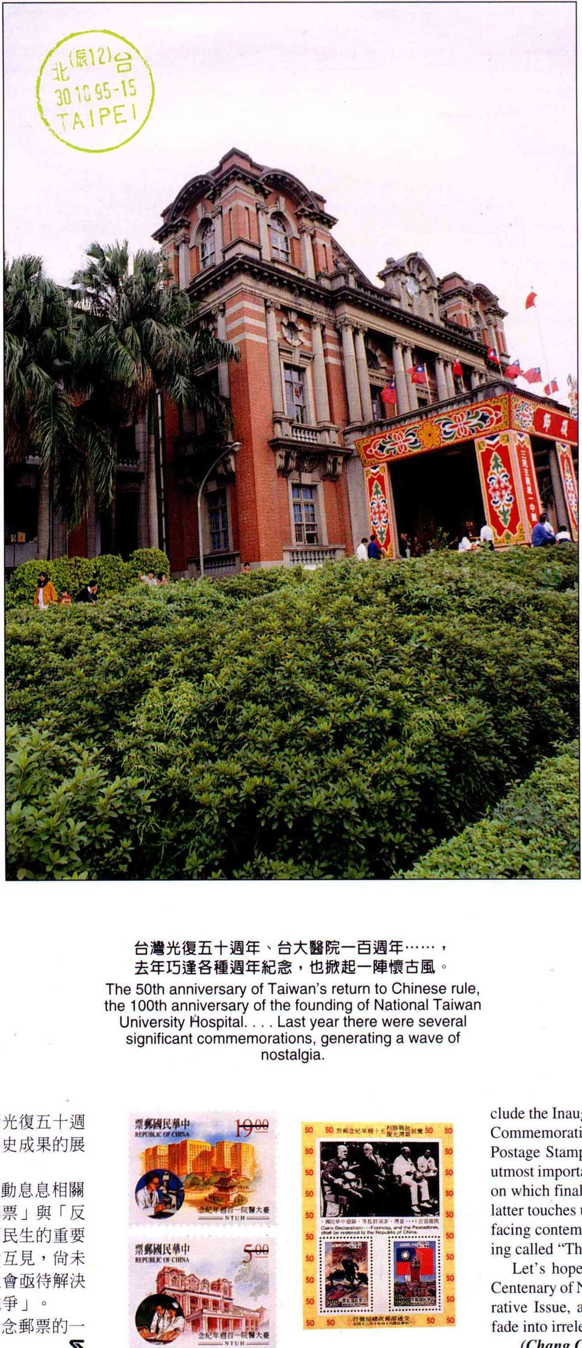 The 50th anniversary of Taiwan's return to Chinese rule, the 100th anniversary of the founding of National Taiwan University Hospital.... Last year there were several significant commemorations, generating a wave of nostalgia.