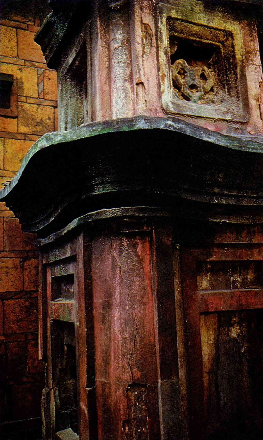 The paint has peeled off this oven used for burning ritual money.
