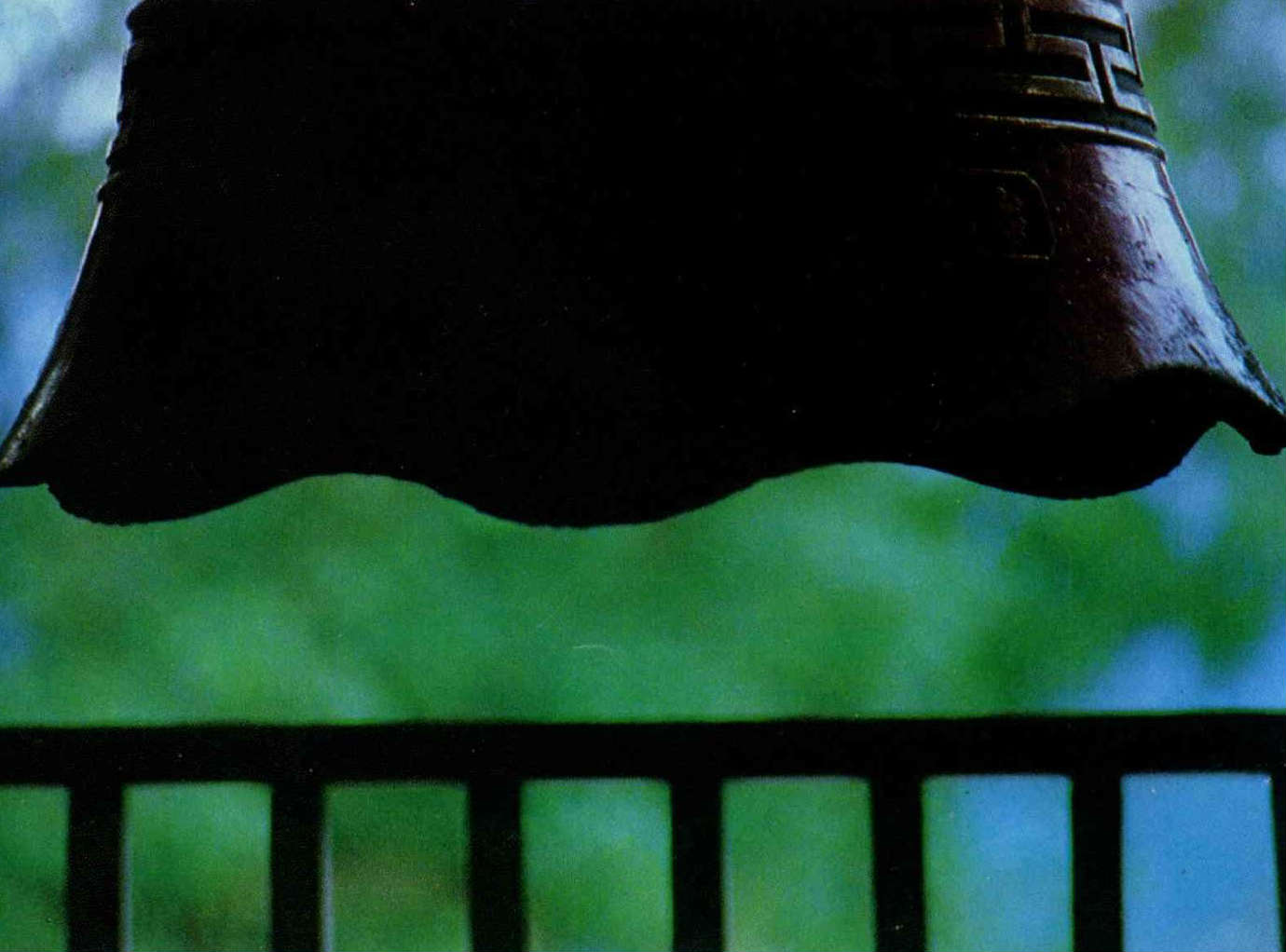 An evening drum and a morning bell give a serious tone to the temple. This is the large bell in the temple.