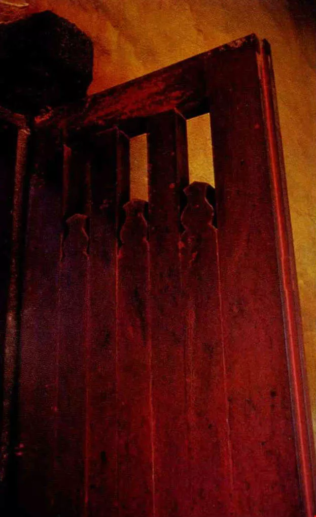 This old door still bears traces of paint used in the past.