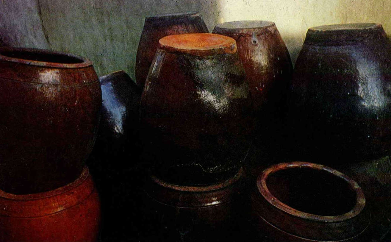 1) Ceramic urns used in the past have been replaced by plastic ones today. 2) An old teapot.