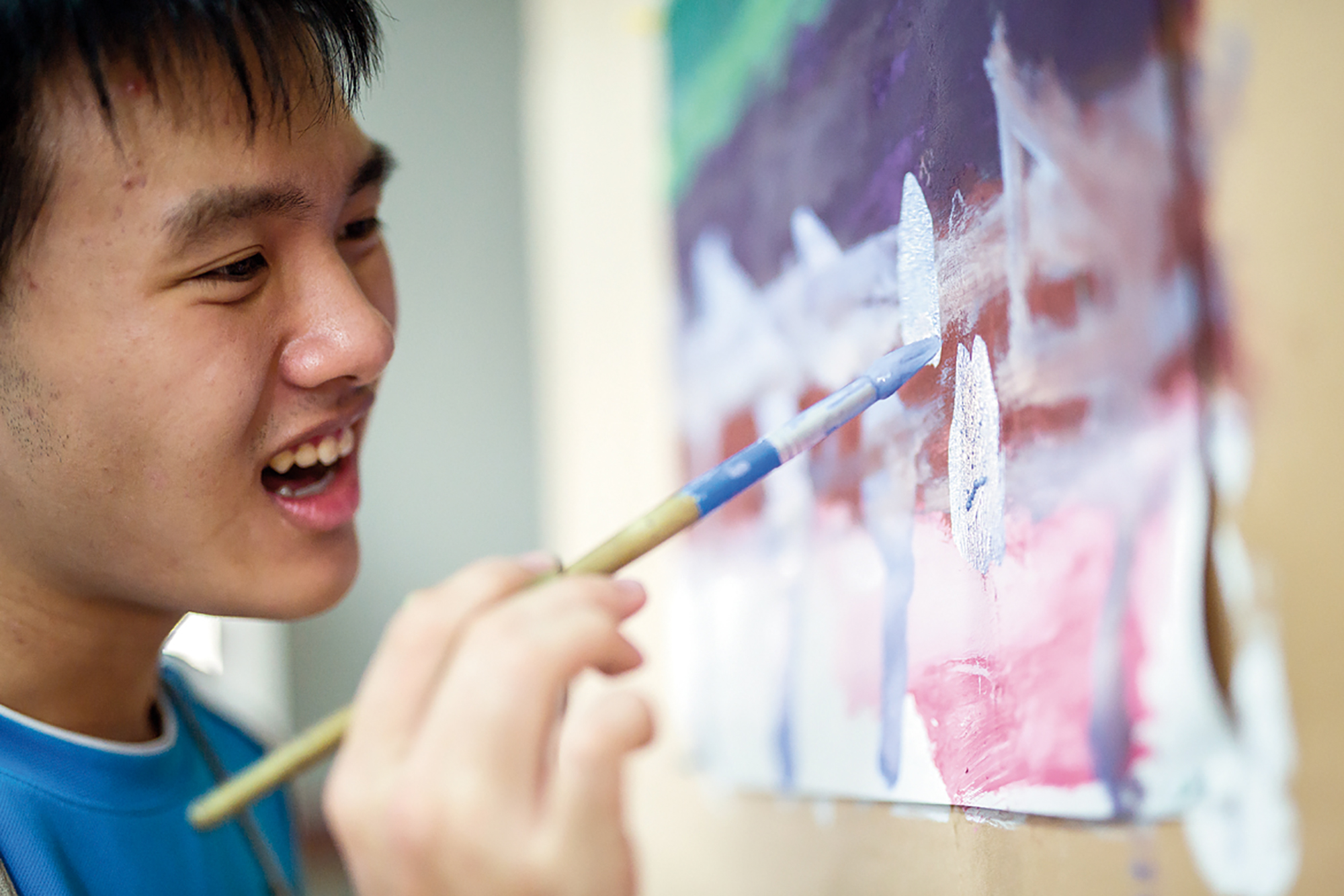 Peter put his training in the arts to good use by setting up a workshop for special needs students ages 15 and up, where they enhance life skills and build confidence by following courses in painting and handicrafts and taking part in community cleanup projects. The workshop gives students free rein to express their natural artistic abilities through expressive art. Students can paint whatever they wish, and the artworks are not used to make psychological evaluations. What matters to Peter is the painting process itself.