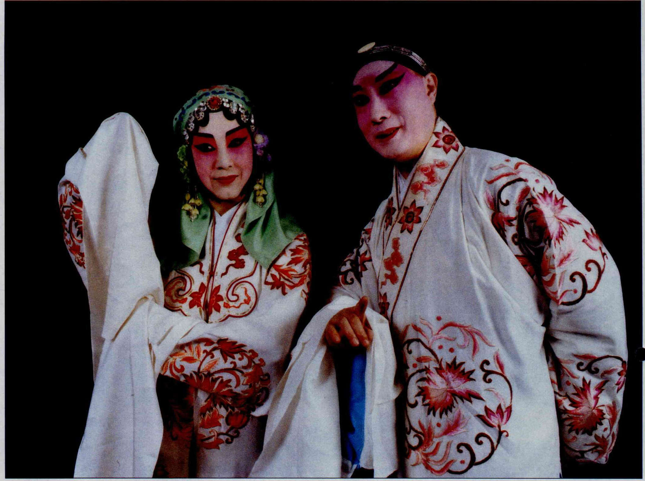 Playing opposite mainland's "National Treasure" Grade artist Du Jinfang (right) not only enriched Yu Wanzeng's operatic experience, it also raised his whole "stature" as a performer. (photo by Teng Hui-en, courtesy of China Times Weekly)