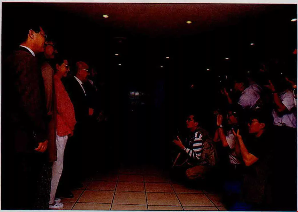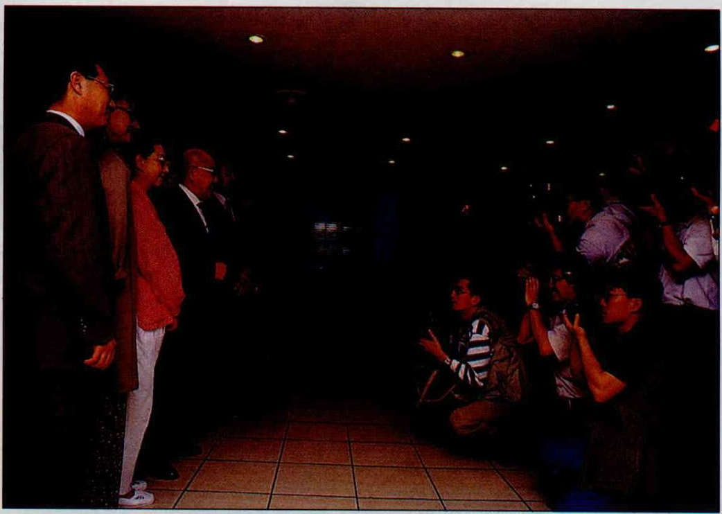 A news conference held when the "China Peking Opera Company" came to perform in Taiwan brought together many Grade 1 performers including Yu Wanzeng (far left). Their arrival delighted the media and audiences alike. (photo by Pu Hua-chih)