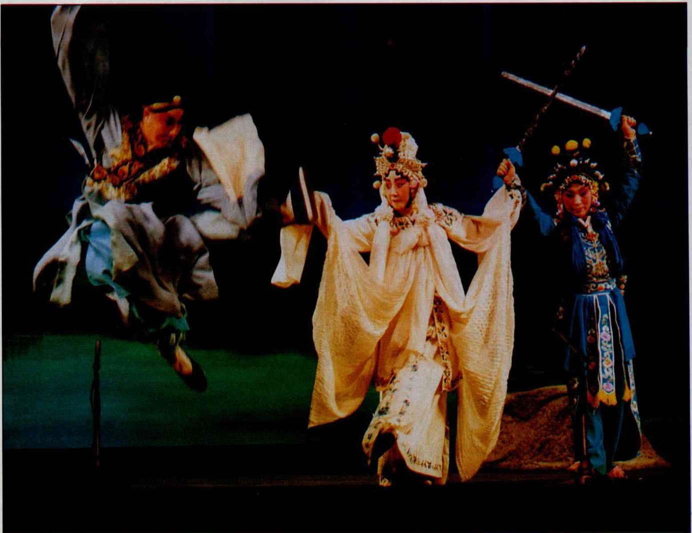 Once a rare opportunity to perform turned up: the army troupe was to play the "Tuanchiao" scene from the Legend of the White Snake, and had not found anyone to sing the role of Hsu Hsien. But finally another member of the troupe who had studied wusheng (male acrobatic roles) was chosen for the part. Although already 30 years old, Yu Wanzeng was so disappointed that he wept.