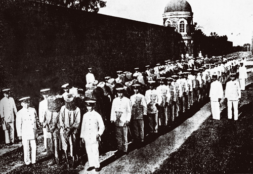 The 1915 Tapani Incident, which took place in the Tainan area, was the last and most virulent armed Han uprising against the Japanese on Taiwan. The photo shows the incident's instigators being led to trial.