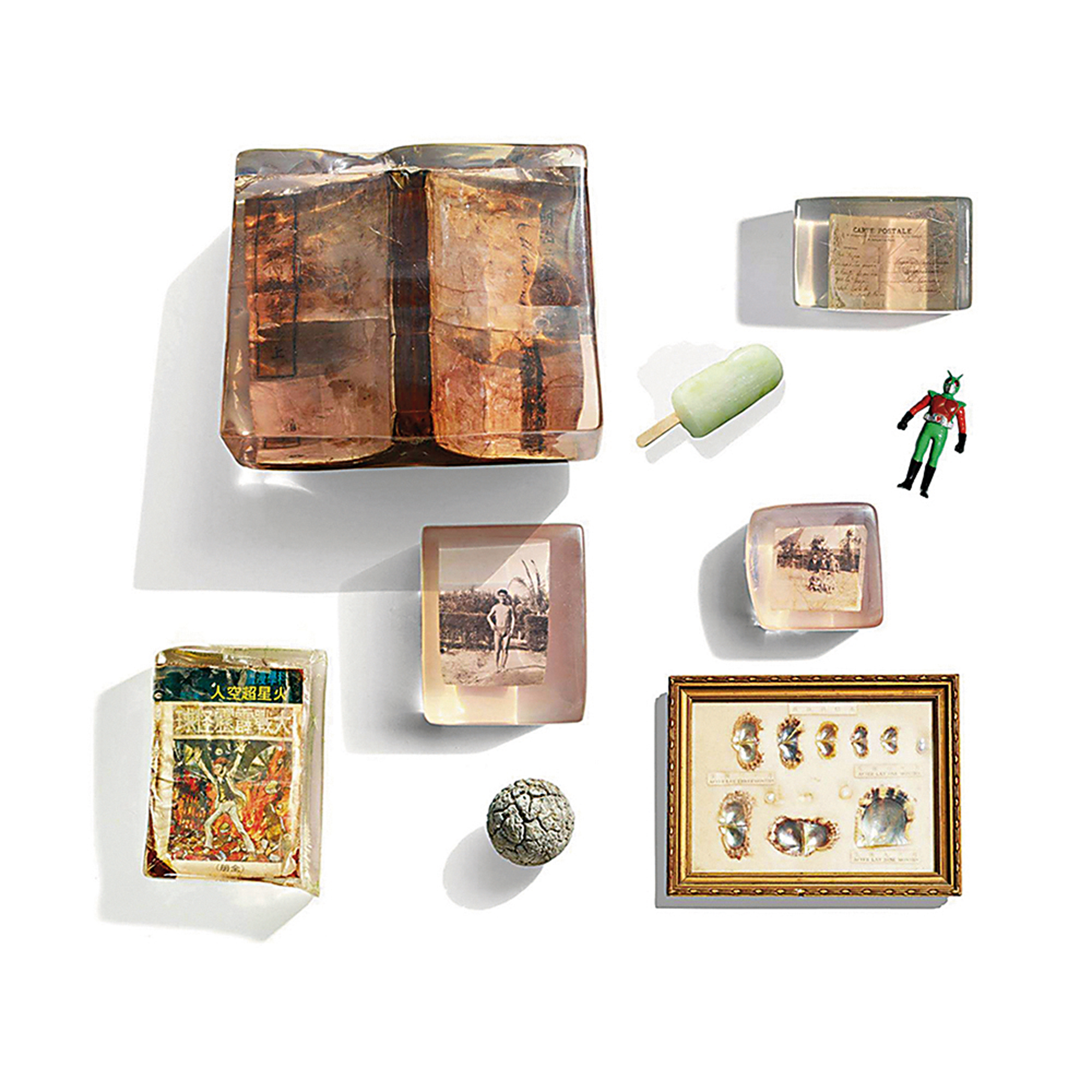 In his works, Huang Tzi-chin uses polyester resin to seal up old things, as if storing away everyone’s common memories. (courtesy of TiFF)