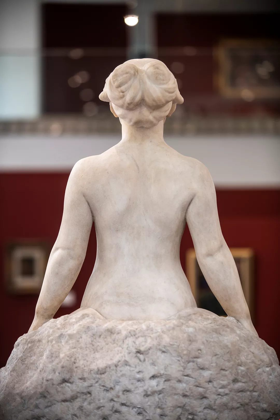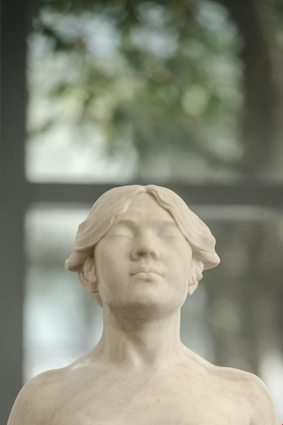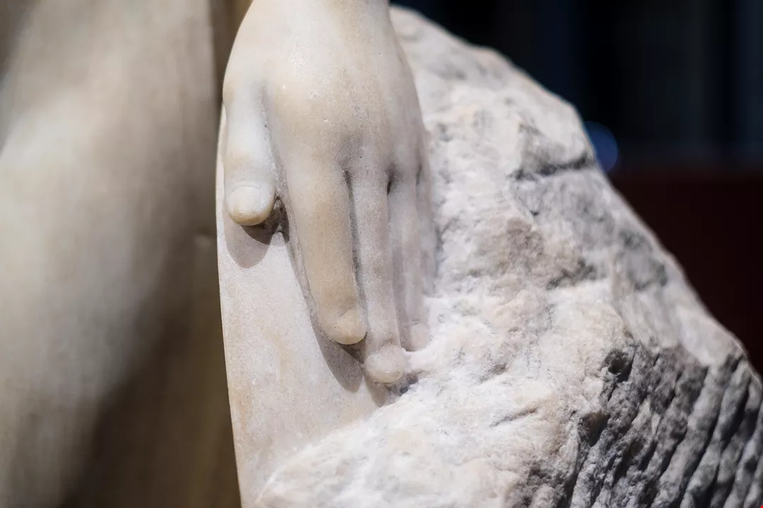 Bright light streams through the windows into the second-floor gallery of the Museum of National Taipei University of Education (MoNTUE). Water of Immortality is standing quietly in one corner. The nearly life-size sculpture faithfully captures the subtle curves of the human body, and the beige color of the marble conveys a sense of warmth. Amid the shifting light and shadows, and against the greenery outside the windows, the sculpted woman seems almost to be alive.