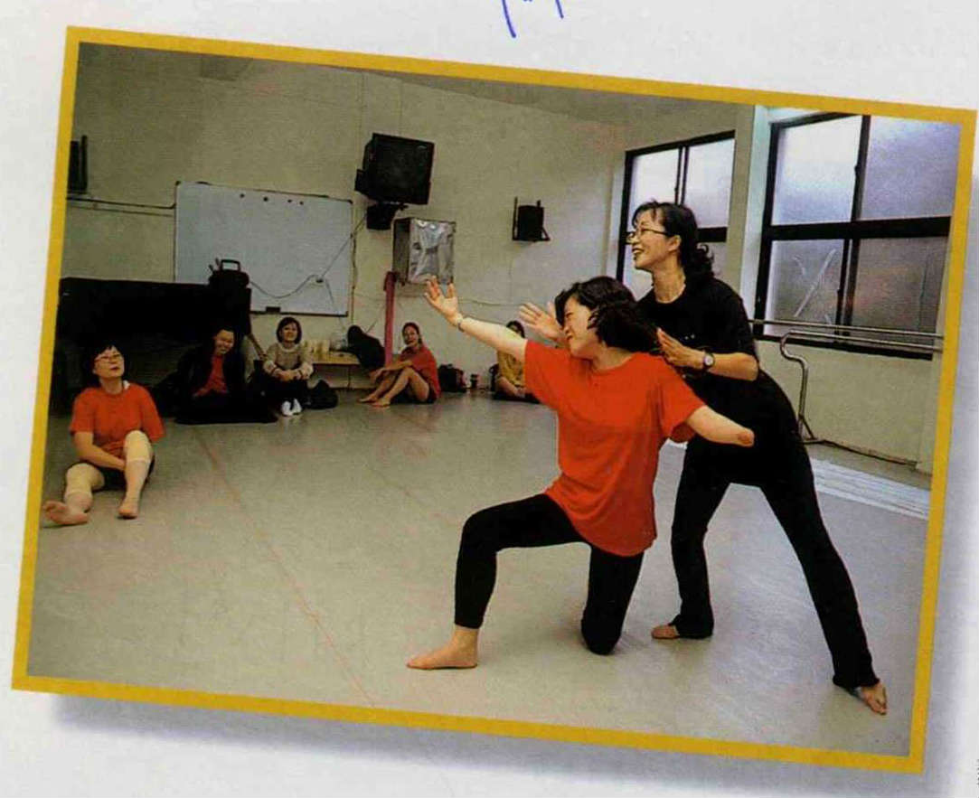Some of the ten or so dancers are hand amputees and some are foot amputees, but they have all taken off their prostheses and put on aerobic dancing costumes to join in the dance. Outside, the wind is whistling and the rain is pouring down, but inside it is sweat which drenches the dancers. Their volunteer instructress Yan Tsui-chen, a teacher in CCU's dance department, repeatedly and patiently demonstrates movements for them, ignoring her own leg injury. A number of dance department staff and students watching from the sidelines are full of praise, and frequently lend their assistance.