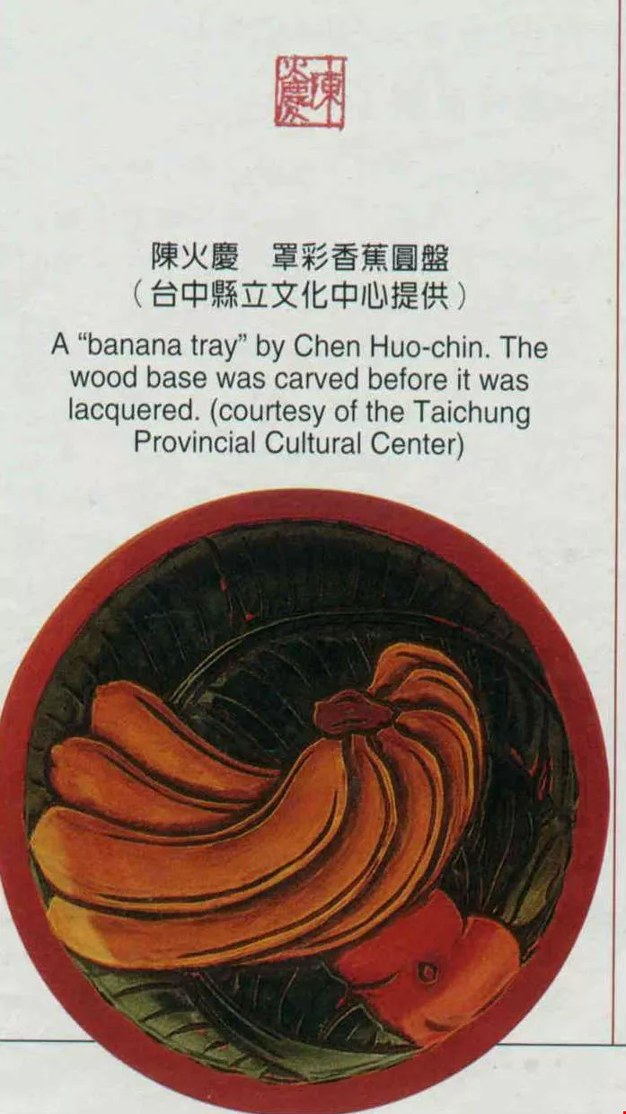 A "banana tray" by Chen Huo-chin. The wood base was carved before it was lacquered. (courtesy of the Taichung Provincial Cultural Center)