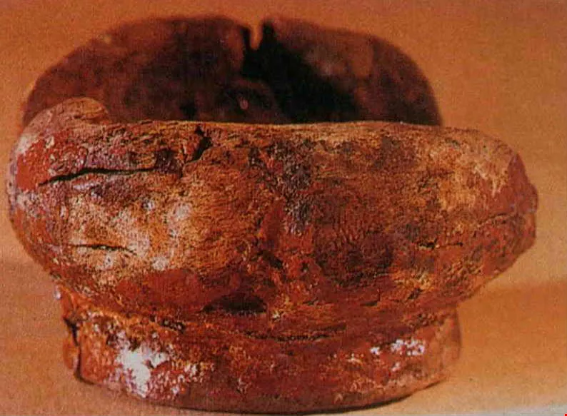 At a Neolithic site at Hemadu in Yuyao County, Zhejiang, archeologists have dug up a speckled and peeling wooden bowl, the outside surface of which was covered with a light, shiny red lacquer. It proves that lacquer ware has at least a 7000-year history in China.