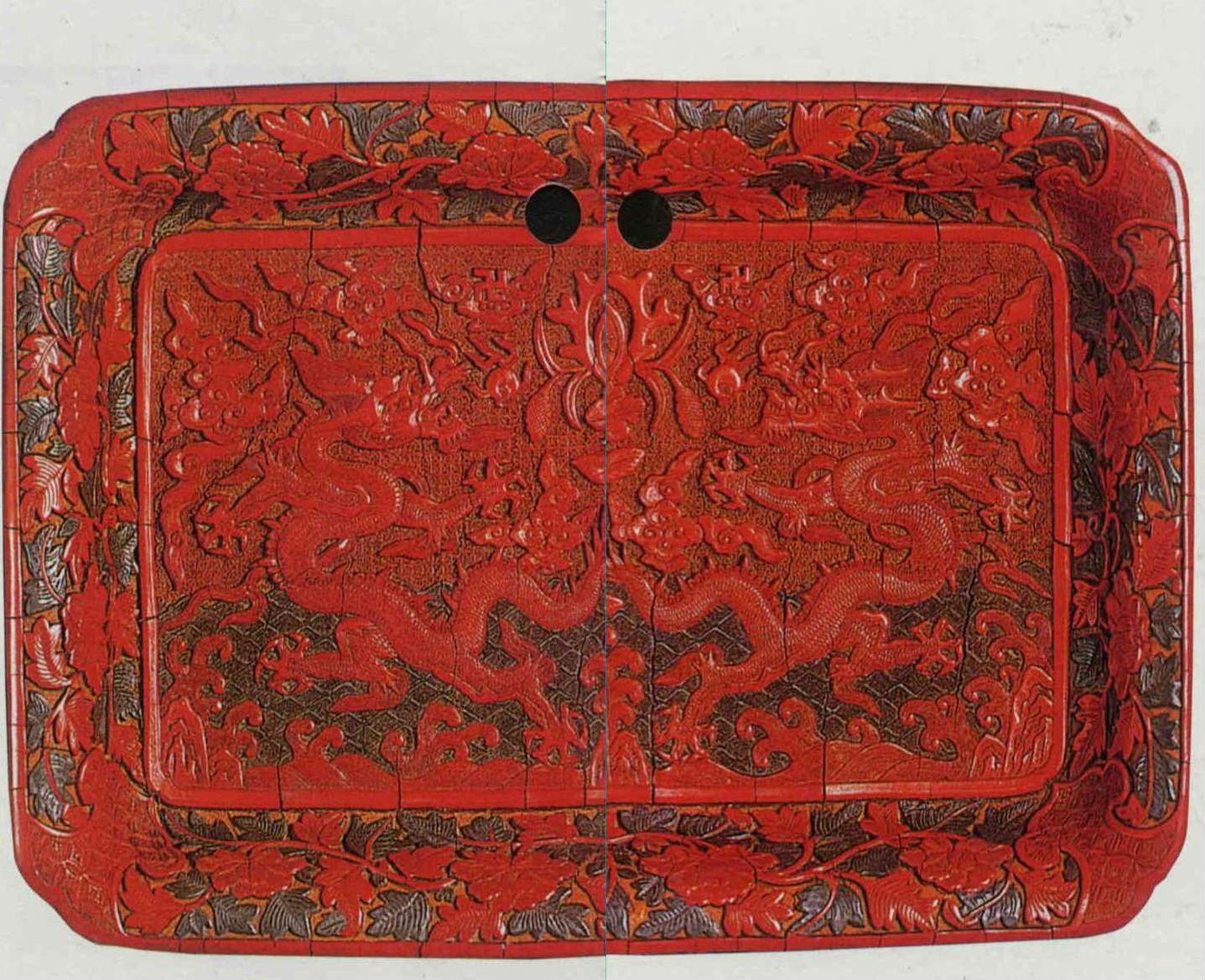In the Ming dynasty, one of the high points in the development of Chinese lacquer, the government established a lacquer ware factory. Production flourished during the rule of Yongle (1403-1425) in which this exquisite tihong and ticai carved lacquer ware was produced. Later lacquer ware masters found it a hard act to follow. (courtesy of the National Palace Museum)