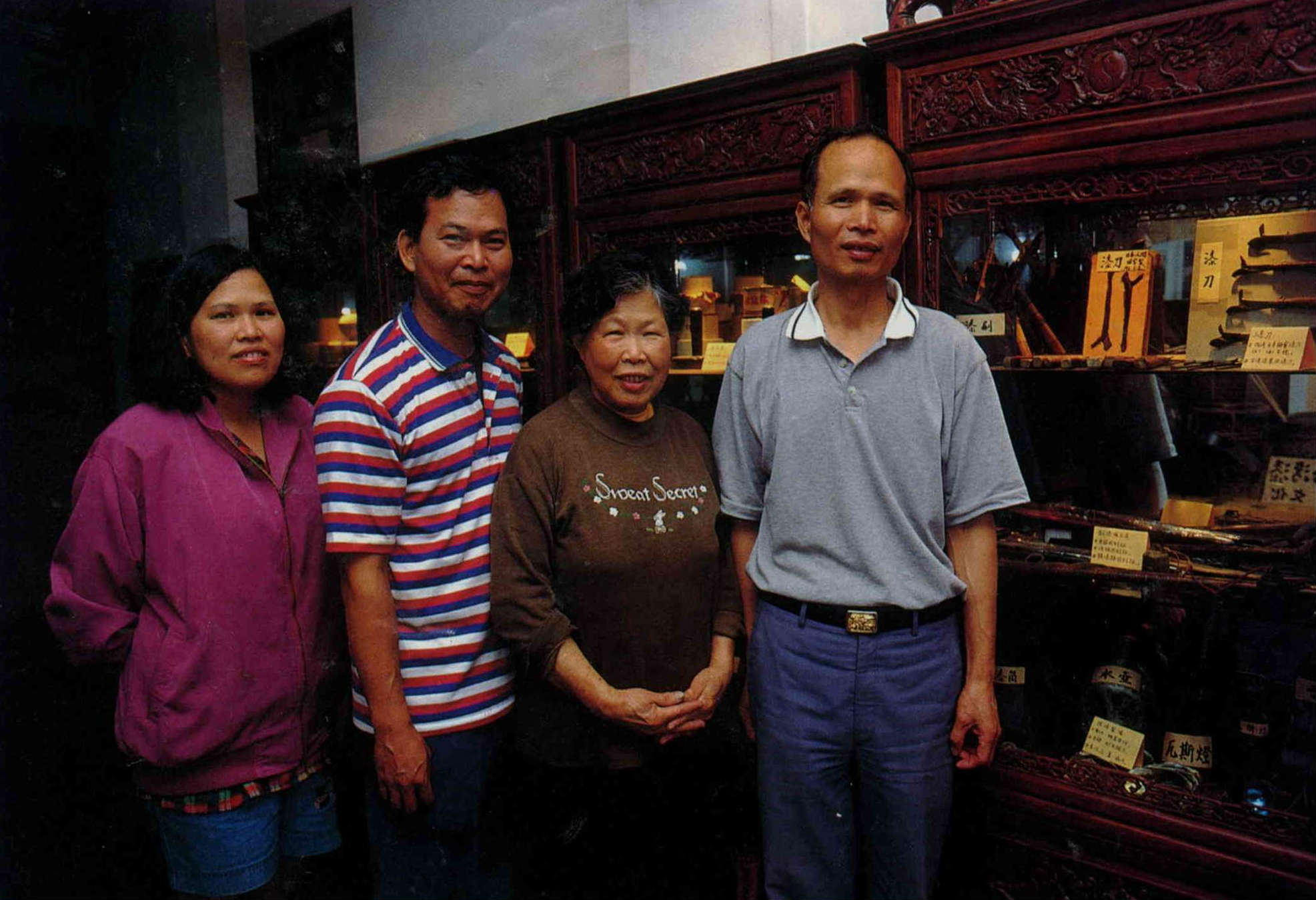Hsu Yi-fu (far right) founded Taiwan's Lacquer Museum. He and his brother, sister and mother have all gathered evidence for posterity about the development of lacquer in Taiwan.