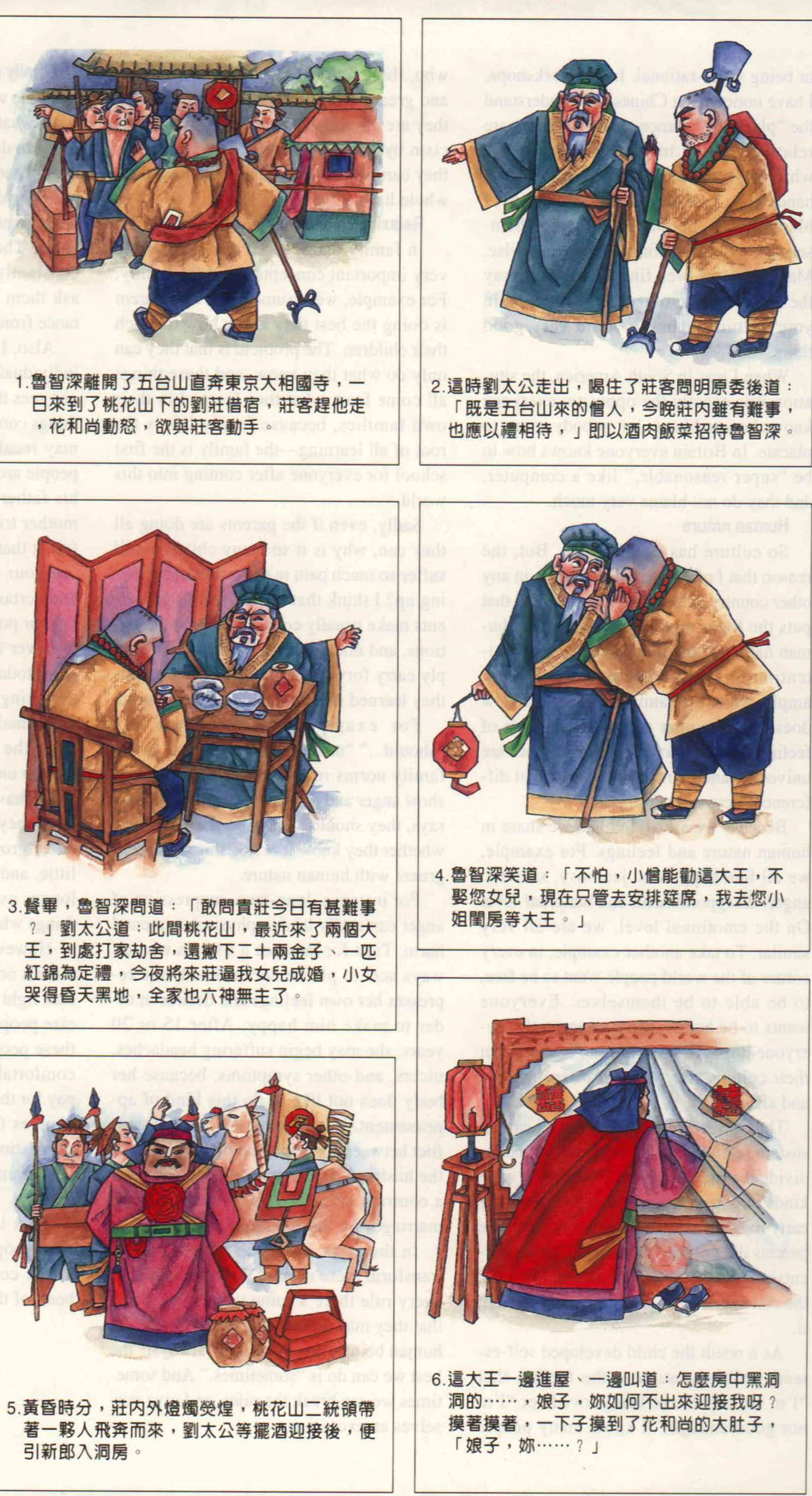4 "Not to worry," smiled Lu. "Permit this humble monk to dissuade the bandit from marrying your daughter. You just go ahead with the banquet as planned, and I'll wait for him in the girl's quarters."