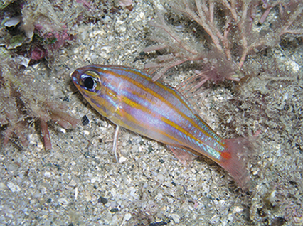 Flower cardinalfish (Ostorhinchus fleurieu) Main habitats: Shallow coastal reefs with moderate currents; tidal channels of estuaries.
