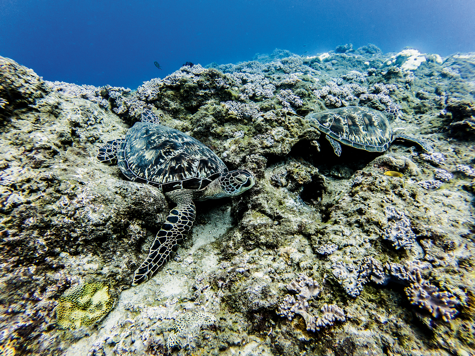 Dai Chang-feng undertook a two-year survey of coral in the Pratas Islands. He says that the Pratas Islands atoll, which lies at the high latitude of 20° North, is some 25 kilometers in diameter, a size rarely seen anywhere in the world. After 20 years of natural rehabilitation, along with a reduction in human interference after the creation of a marine protected area, the coral coverage rate in the lagoon of the atoll has risen from 0% after destruction by natural disasters, to 40‡50% today.