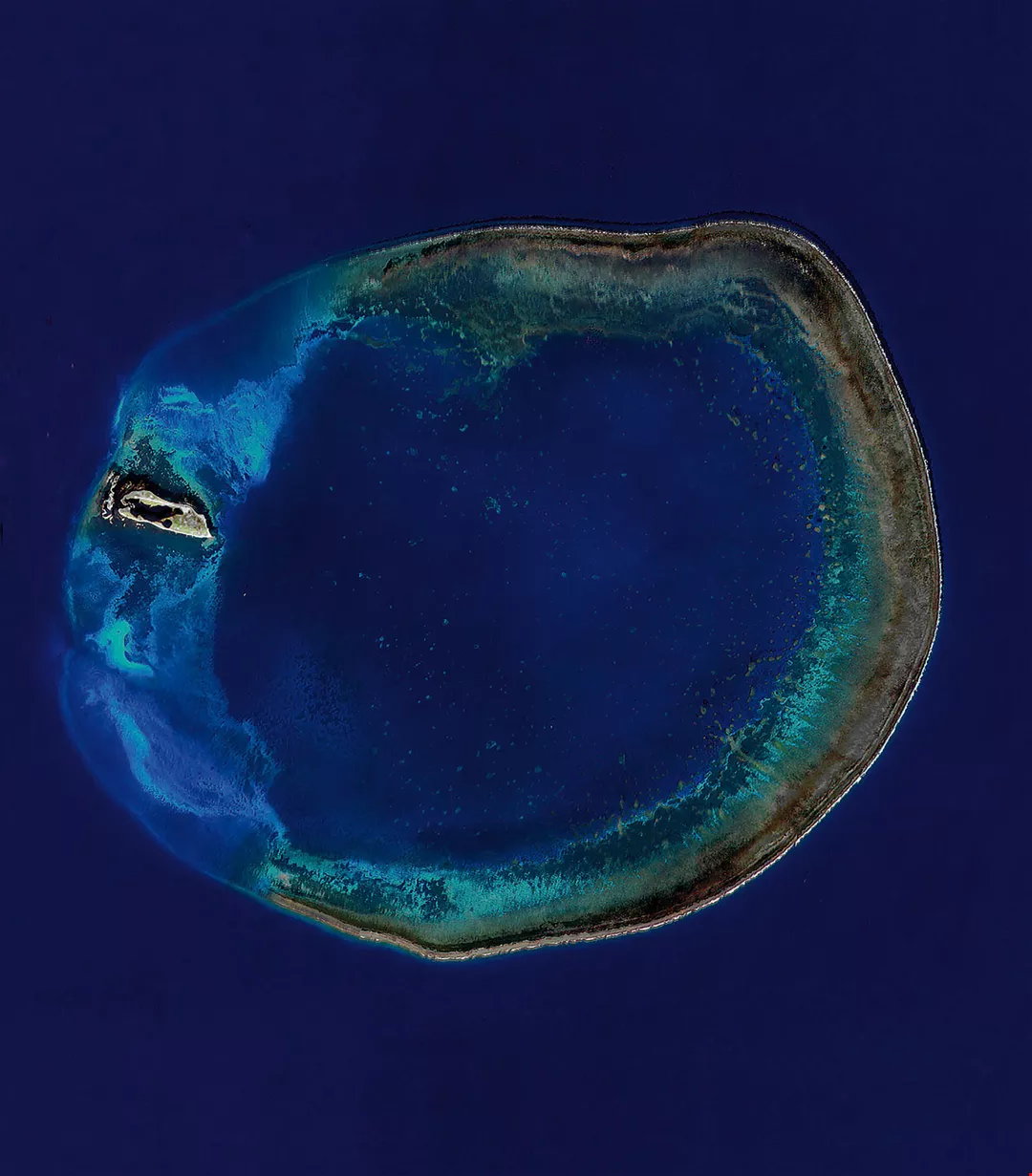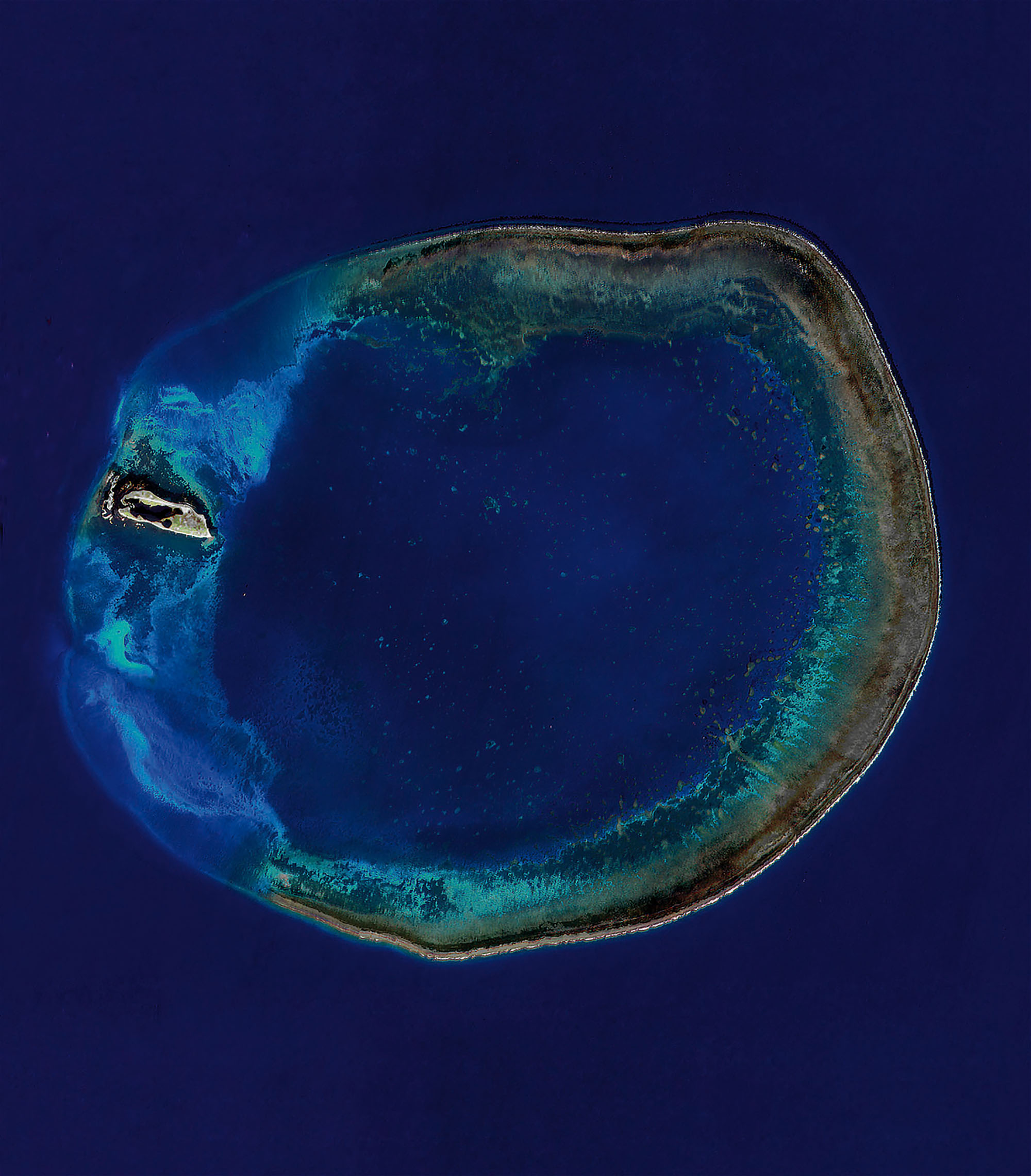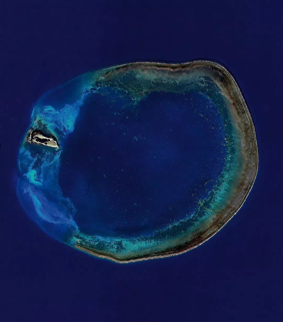 This satellite photo shows the Pratas Islands atoll, which is unusually large at some 25 km in diameter. (courtesy of Dai Chang-feng)