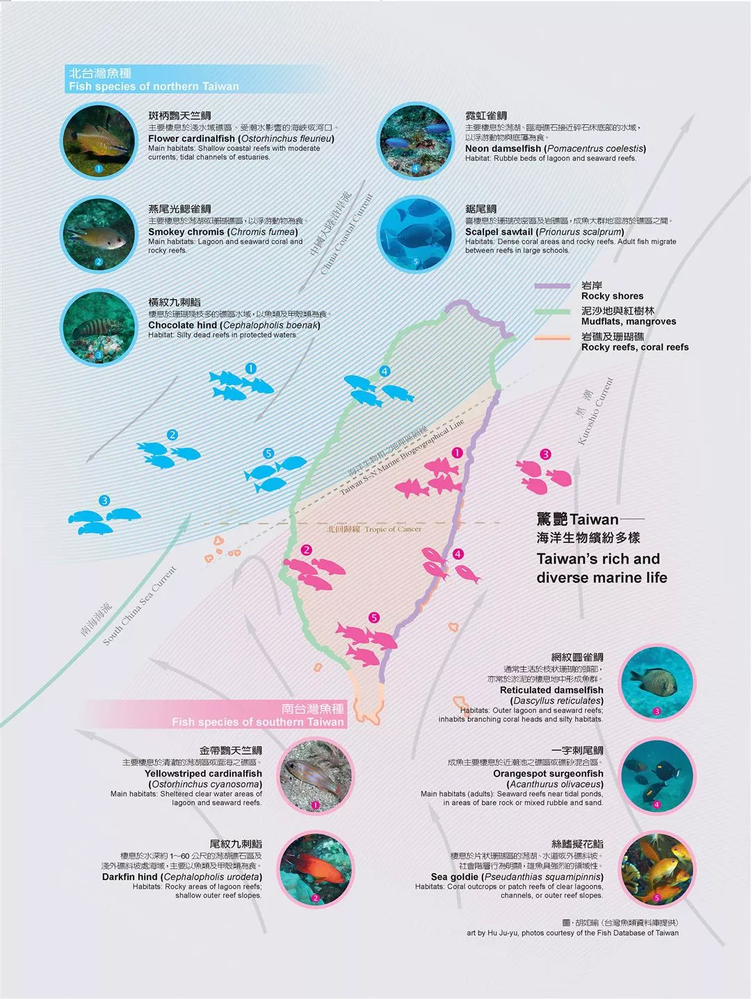 There are some 220—230,000 marine biological species in the world. Taiwan, though small in area, has about 12—13,000 marine species. The reason why Taiwan has such rich marine resources is due to the island’s unique geographic position.