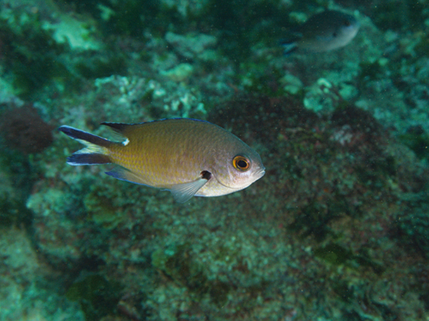 Smokey chromis (Chromis fumea) Main habitats: Lagoon and seaward coral and rocky reefs.