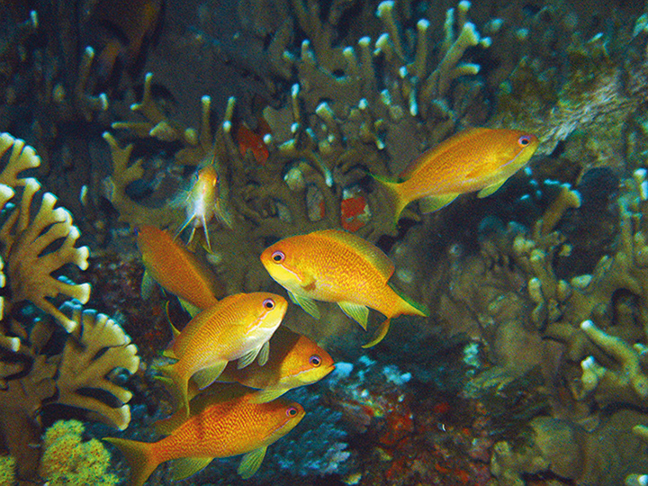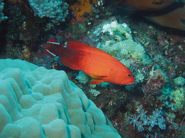 Sea goldie (Pseudanthias squamipinnis) Habitats: Coral outcrops or patch reefs of clear lagoons, channels, or outer reef slopes.