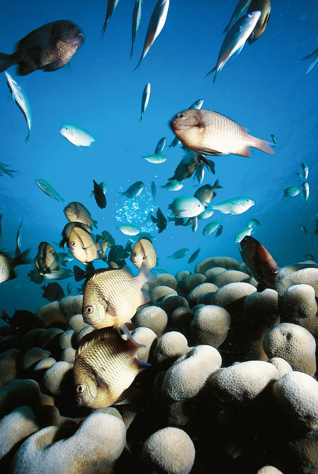 Not only are there many fish species, but their distribution has features unique to Taiwan. Because Taiwan straddles the border between the tropical and subtropical regions, there are marked differences between the marine life around the north of the island and that around the south. Shao Kwang-tsao cites the following examples: “In the seas off northern Taiwan you can see the chocolate hind [Cephalopholis boenak] and the smokey chromis [Chromis fumea], but you can’t see them in the south. And you will see no sign in the northern seas of the sharp-nosed garden eel [Gorgasia taiwanensis] or the sea goldie [Pseudanthias squamipinnis] that you can discover in the seas off Kenting in the southernmost part of Taiwan. It’s hard to find anywhere in the world that compares in terms of the richness of marine resources.”