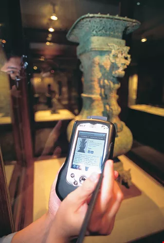 When Hsiao-shan takes her American husband to Taipei's National History Museum, she takes out her mobile phone, but it's not in order to make a phone call. Hsiao-shan's phone is receiving an RFID (radio frequency identification--an increasingly popular wireless identification technology) transmission. Immediately a string of information about the aged bronzeware in front of her, with its mottled patina, is appearing on a screen about the same size as a PDA's. "Cloud Dragon Urn ... origin Zheng Tombs, Xinzheng, Henan Province, China ... the urn is in the form of a wine pitcher, and can also be filled with water ..." But what's that in English? No problem; translate the explanation into English. Hsiao Shan gives the mobile to her husband so he can read it for himself.