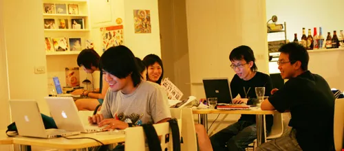From coffee-shop hot spots to museum guides, new opportunities for wireless broadband are being found everywhere. Pictured are the 4am Cafe in Taipei's eastern district.