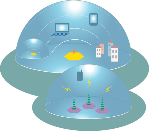 With the rise of WLAN (wireless local area network), the world's near 70,000 wireless hot-spots are converging to form city-size "hot areas." As transmission areas grow ever greater and people carry devices with increasingly greater capacity, it is becoming possible to access the Internet anywhere and everywhere at will.