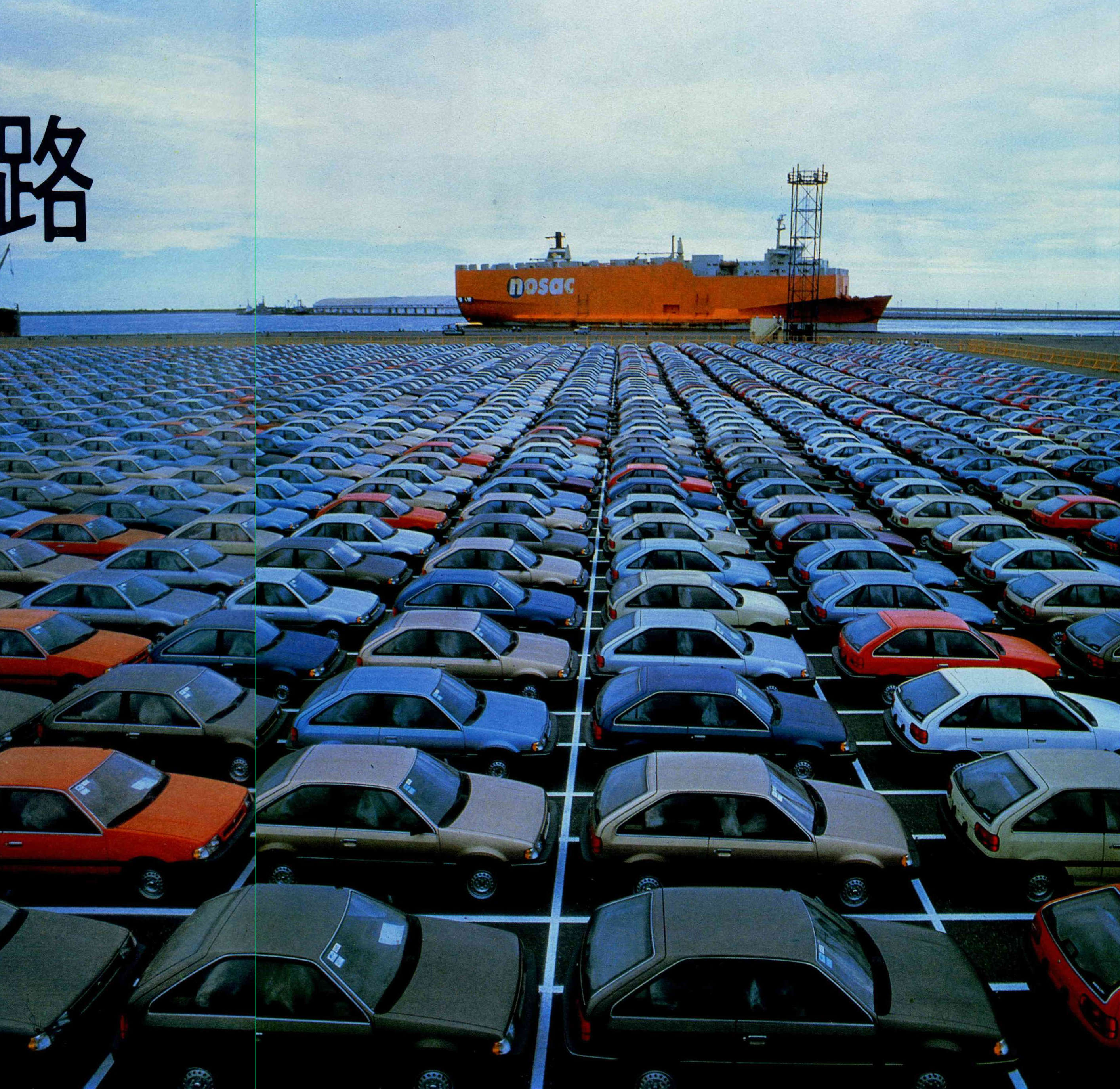 A flotilla of Fords waiting at Taichung harbor to be exported. (photo courtesy of Ford Liu Ho Motor Co.)