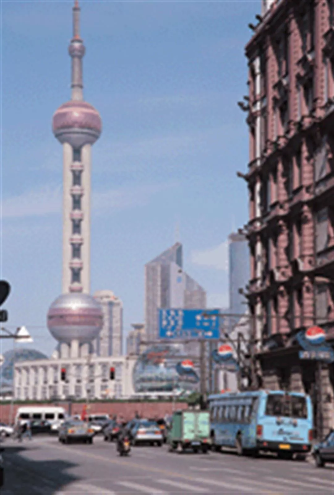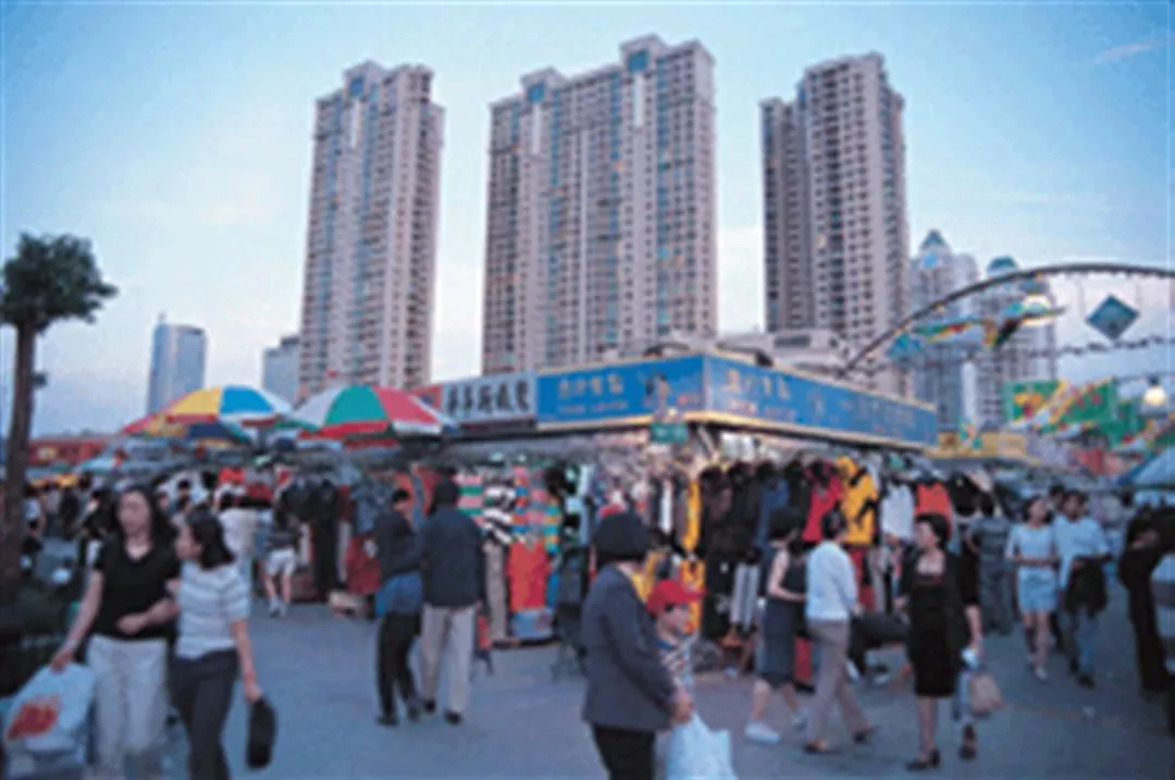Lujiazui is just the tip of the newly developed Pudong District beyond the Bund. Going further out, the Waigaoqiao tax-free zone, the Jinqiao export processing zone, and the Kangqiao industrial park open out in a semi-oval shape. At the center is the Zhang-jiang High-Tech Park. Though currently still empty space, the potential of this industrial zone to become "China's Silicon Valley" should not be underestimated. Going even further beyond, there are farms covered by dust raised by workers rushing to complete the day's construction work before nightfall, until the farmland finally blends into the deep blue of the East China Sea in the remote distance.