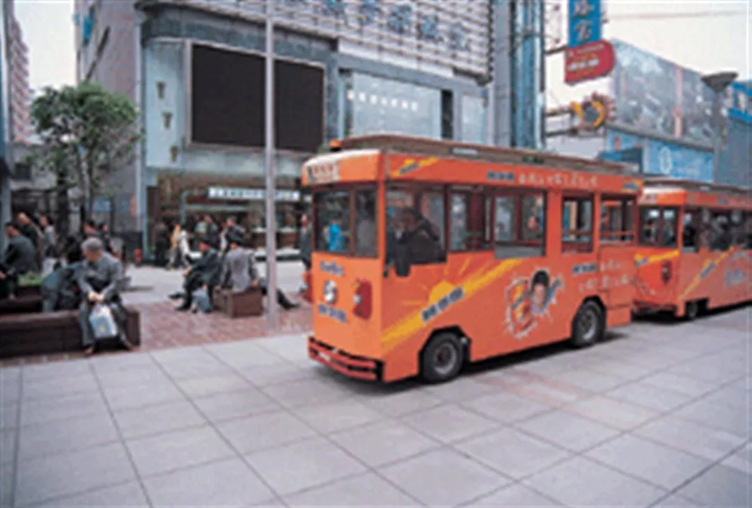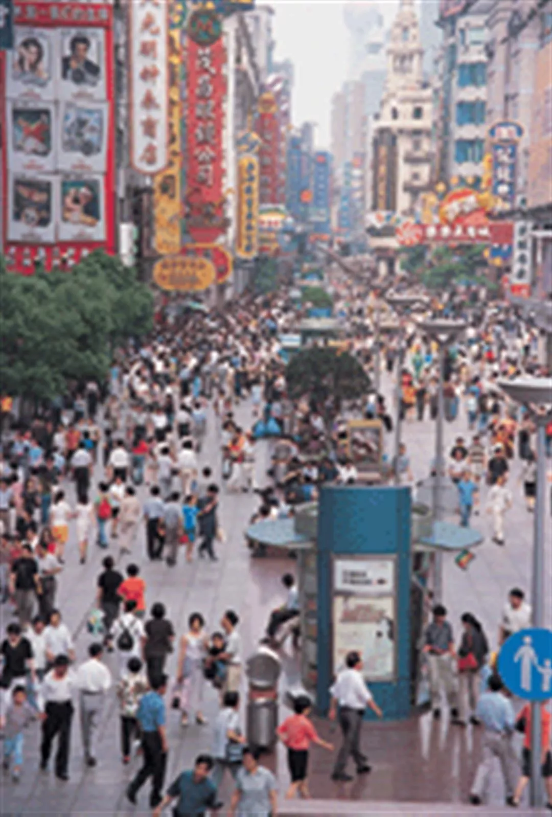 The tourists in the pedestrian area on Nanjing Road have themselves become a medium for advertising.