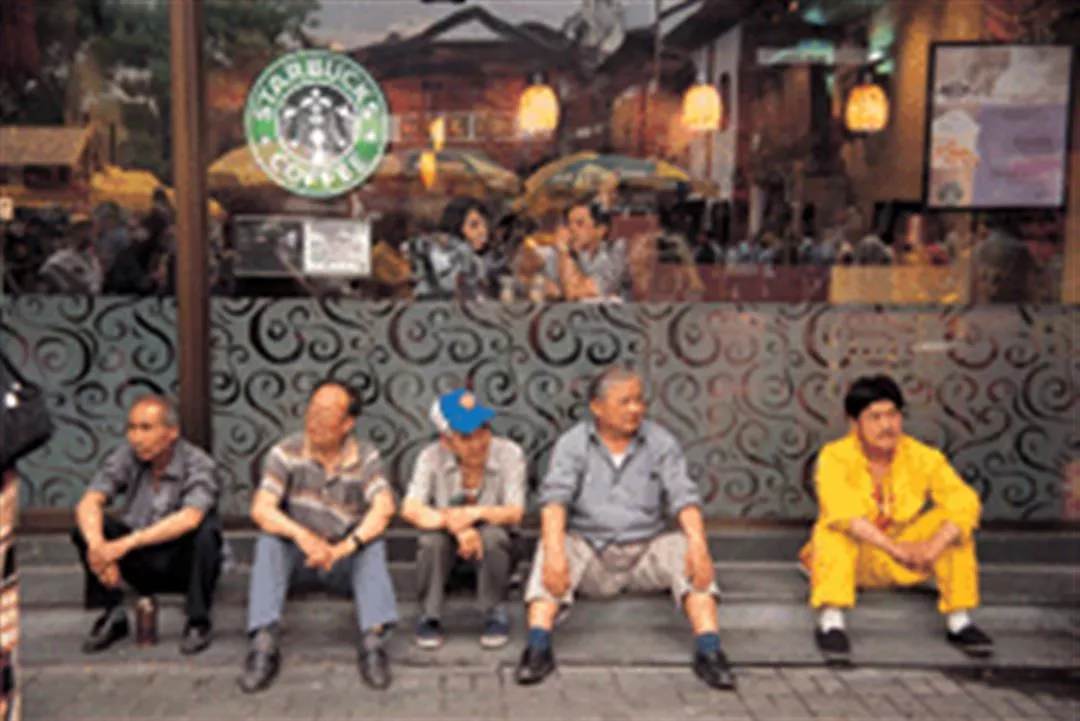 Starbucks, brought into the mainland by Taiwan's President Enterprises, is a new symbol of fashion in Shanghai. It makes an interesting contrast with the passers-by taking a rest outside.